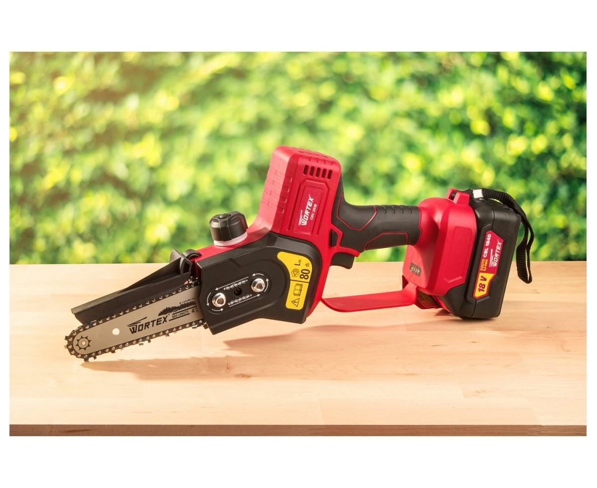 Цепная аккумуляторная пила WORTEX CEC 2518 ALL1 18 В, 4 А*ч 0323167 применяется для распила древесины.