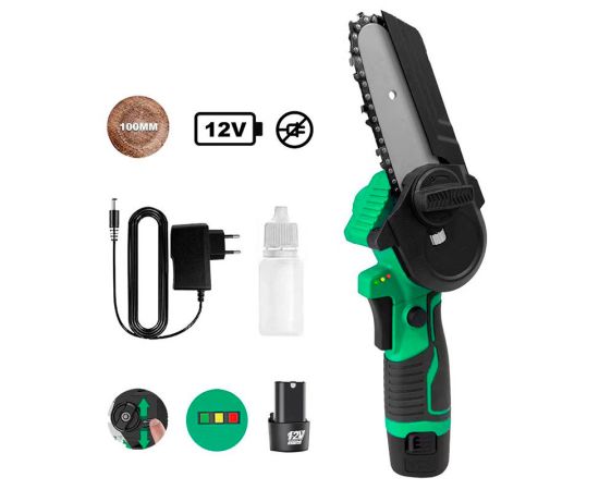 Пила цепная аккумуляторная Zitrek GreenSaw 12 незаменима при работе в мастерской или в саду для распиливания различных материалов. Предназначена для пропилов в древесине и пластмассе. Инструмент работает от литий-ионного аккумулятора.