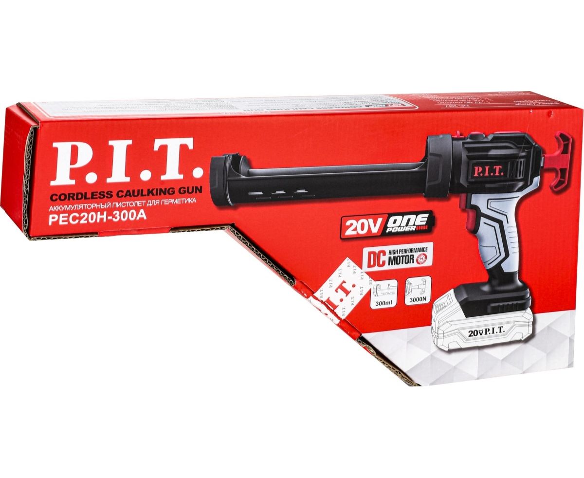 Пистолет для герметика аккуммуляторныя P.I.T. PEC20H-300A Solo (20В, 4ск, 3000Н, 300мл, LED, антикапля)