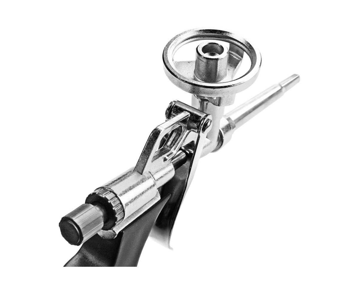 Благодаря винту регулировки напора пена наносится аккуратно и точно.