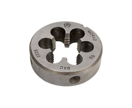 Плашка М 24 х2 9ХС ТМ Туламаш 57928 разработана для крупной резьбы. Изделие представляет собой прочный инструмент с добавлением в сталь хрома и углерода.