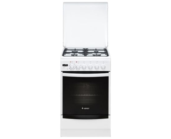 Комбинированная плита оснащена 4 газовыми конфорками и электрической духовкой. Объём духовки составляет 52 литра. Режим гриля идеально подходит для быстрого приготовления сочного блюда с поджаристой корочкой. Двойное остекление дверцы духовки удерживает тепло внутри в течение всего процесса приготовления пищи. Внутреннее покрытие из эмали облегчает чистку стенок духовки.