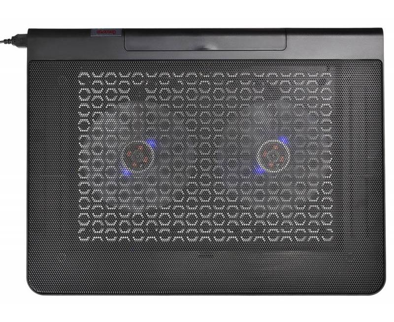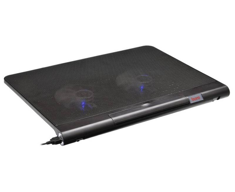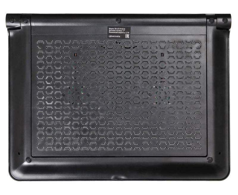 Подставка для ноутбука до 17,3" Buro BU-LCP170-B214 Black, 2 вентилятора: 140 мм, поток: 76.61 CFM, уровень шума: 23 dB(A), 2 х USB-разъёма, LED подсветка, регулировка наклона, материал: металл, пластик