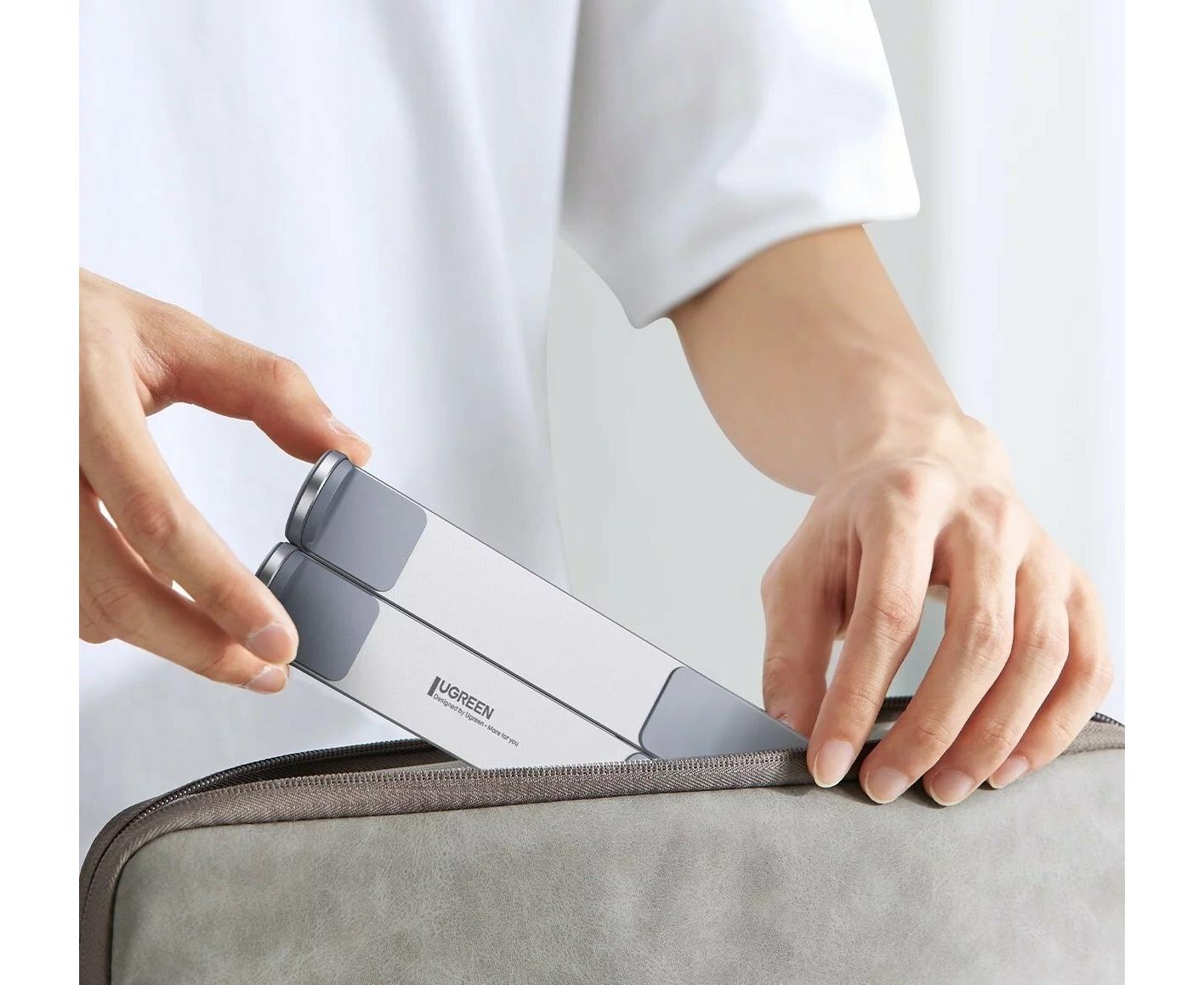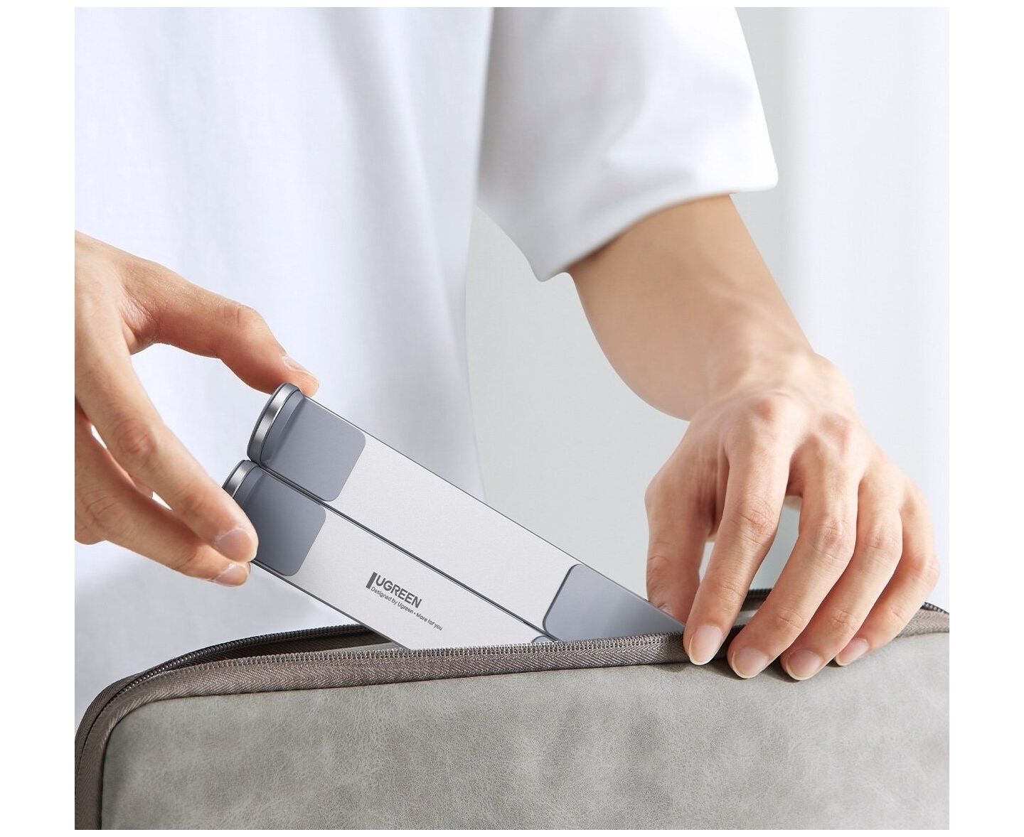 Подставка складывается, что позволяет ей легко поместиться в любой портфель, рюкзак, сумку или чемодан.