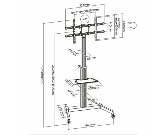 Подставка для телевизора Ultramounts UM307W белый 37"-86" макс.50кг напольный мобильный