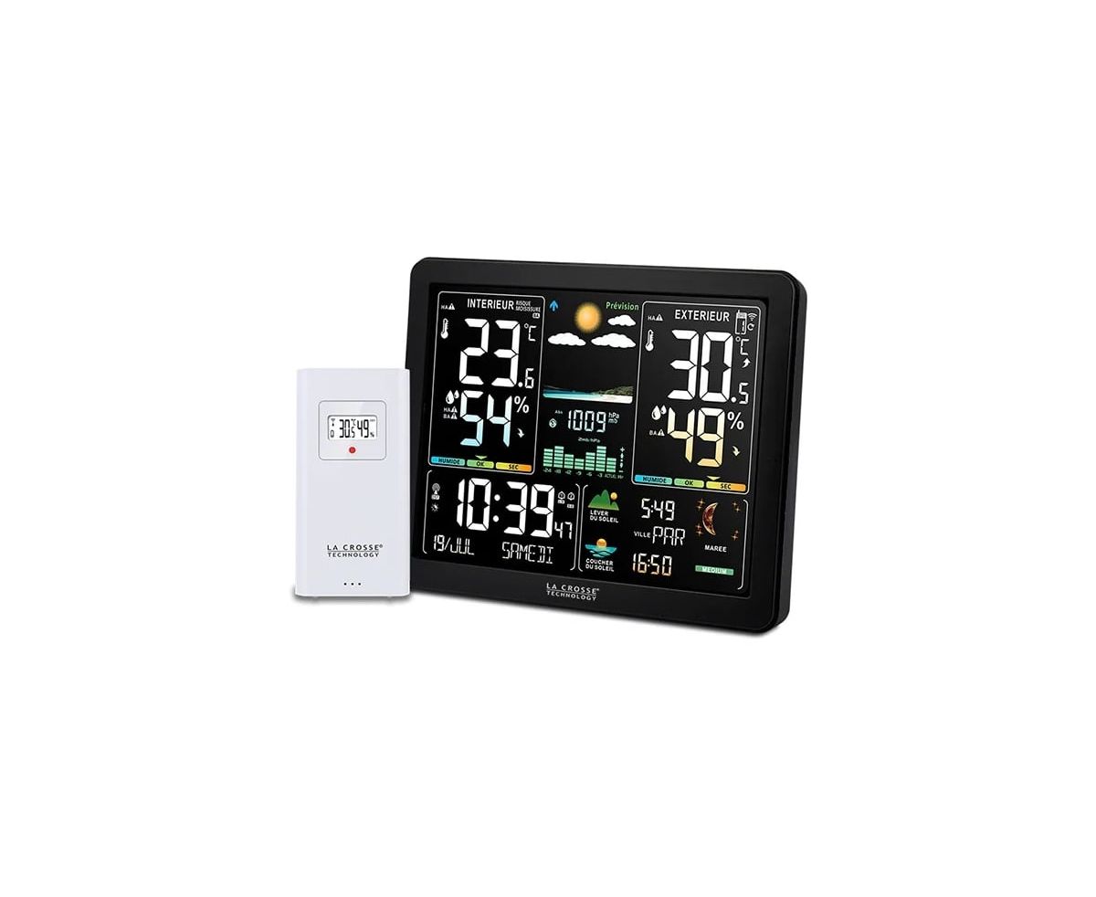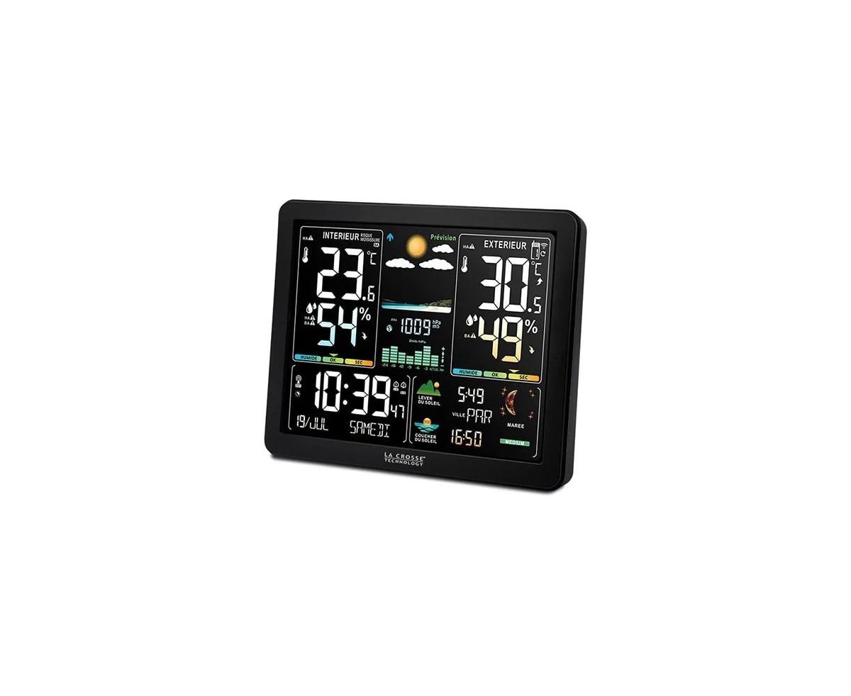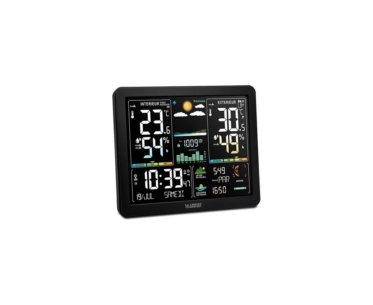La Crosse WS6236 – стильная метеостанция с максимальным набором функций, полезных для каждого пользователя. Температура и влажность воздуха, давление, прогноз погоды, часы, календарь, фазы Луны, время восхода солнца, приливы и многое другое представлено на красочном цветном дисплее.