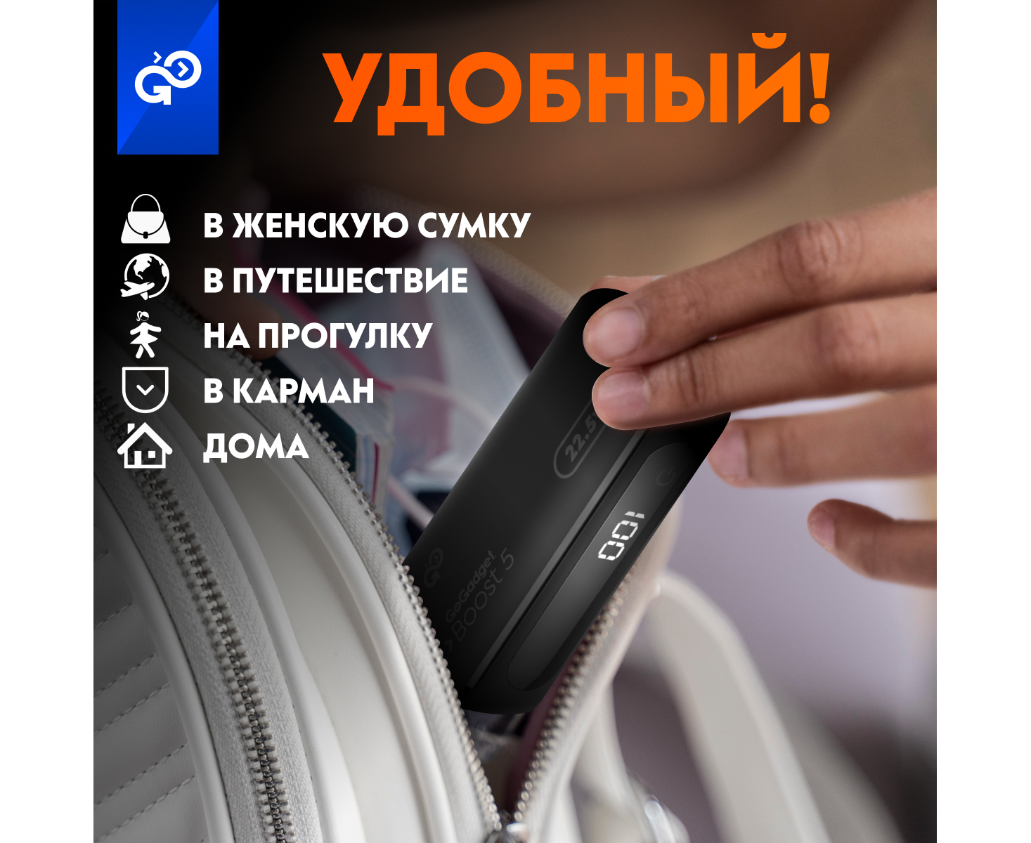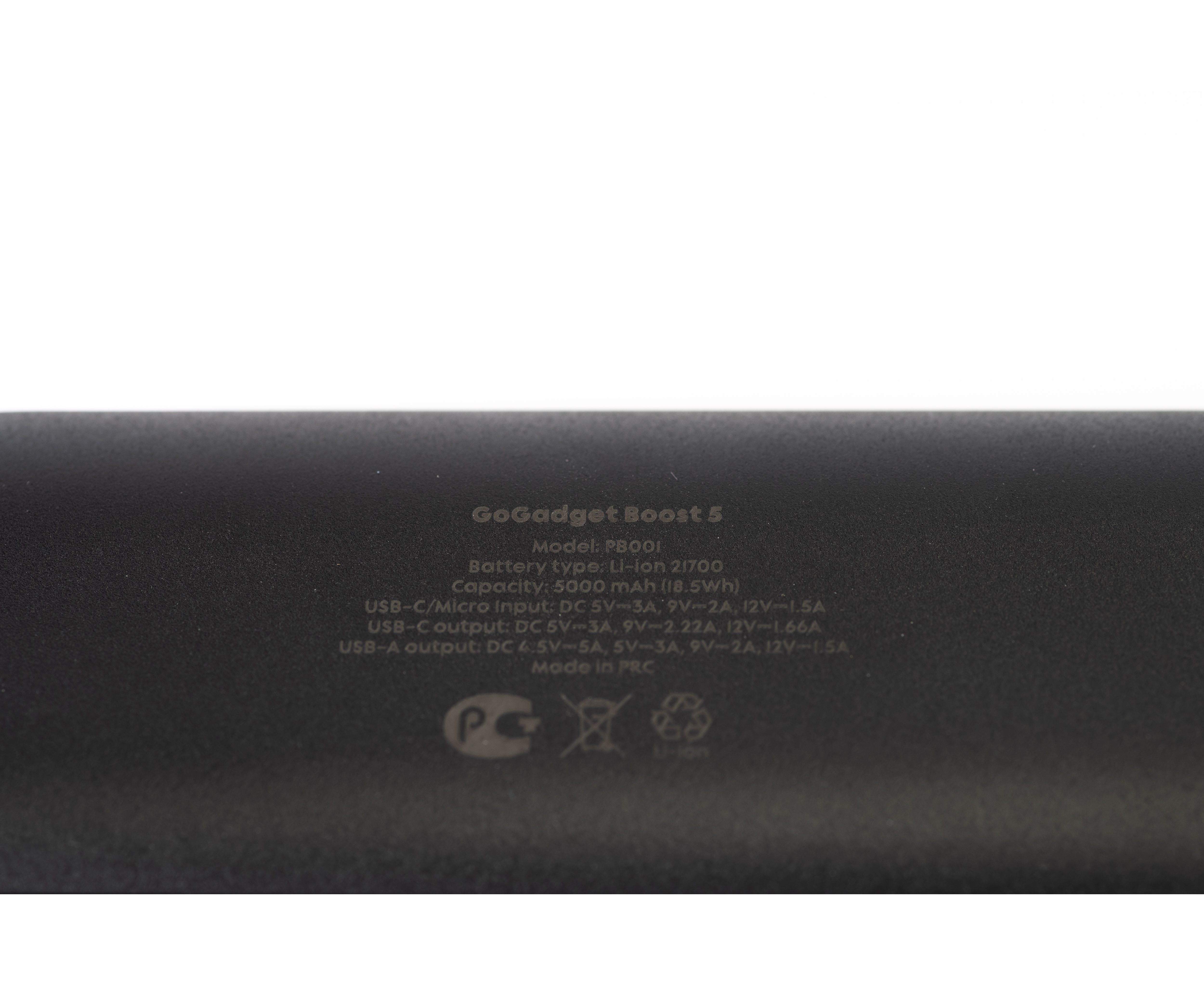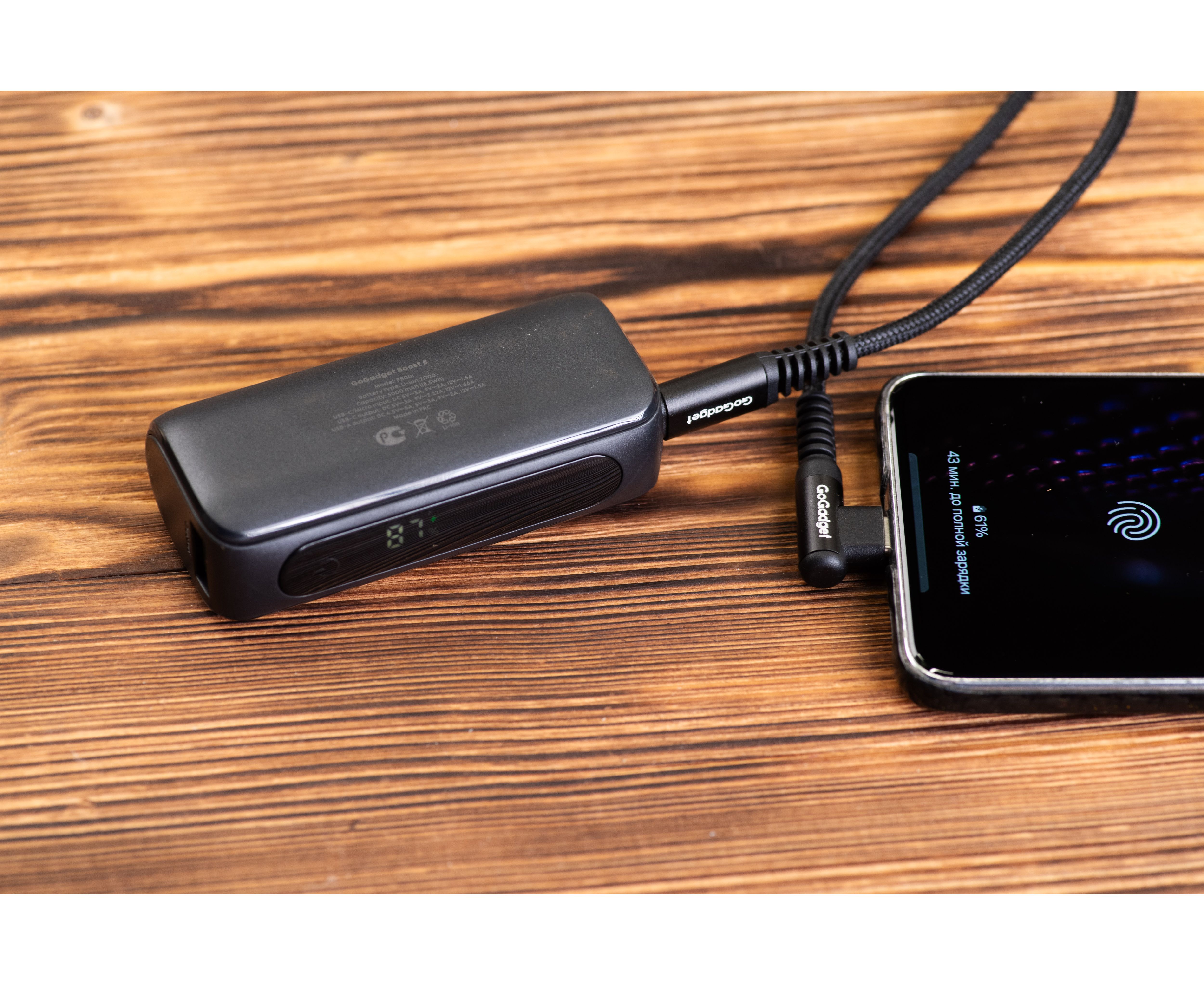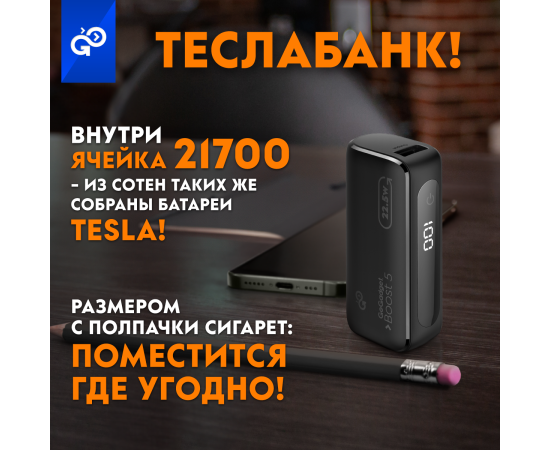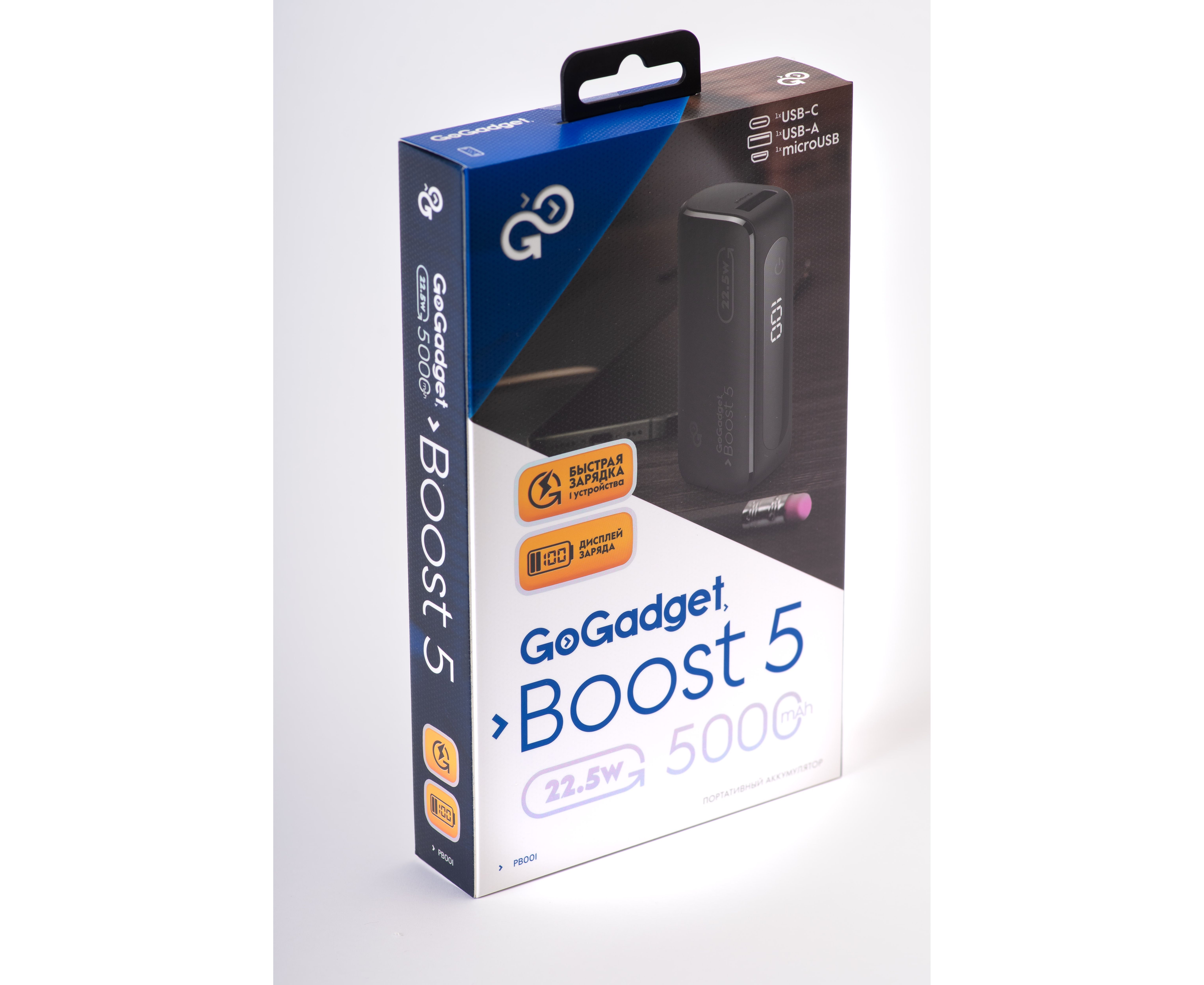 Портативный аккумулятор GoGadget Boost 5 22,5 Вт 5000 мАч 1x USB-C, 1x USB-A, 1x microUSB, ЧЕРНЫЙ