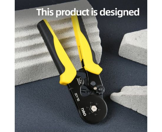 Пресс-клещи Deli DL-L12 предназначены для обжима наконечников НШВИ сечением от 0,25 до 6 кв.мм, что делает их универсальным решением для электромонтажных работ.