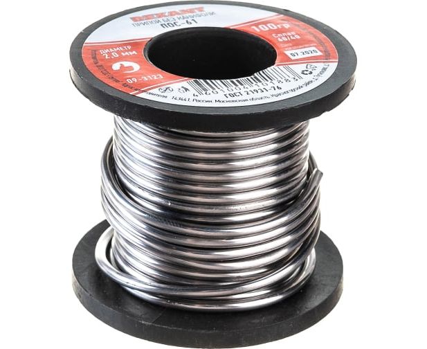 Припой без канифоли REXANT ПОС-61 (09-3123)