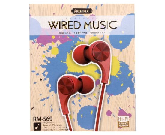 Проводные наушники REMAX RM-569, Jack 3.5mm, 1.2 м, красный