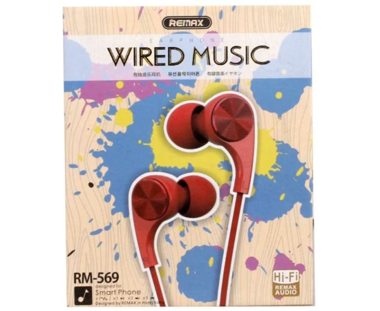 Проводные наушники REMAX RM-569, Jack 3.5mm, 1.2 м, красный