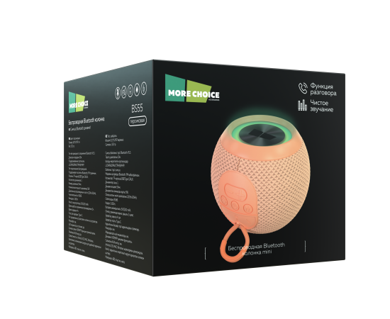 PURE Колонка Bluetooth 5.3 5W 1200mAh More Choice BS55 (Peach)