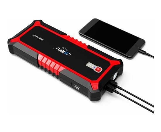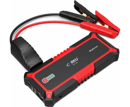 Портативное пуско-зарядное устройство CARKU 17000 mAh jump starter Pro-30 предназначено для запуска двигателей транспортных средств объёмом до 8 литров (бензин) и до 5 литров (дизель). Кроме этого может использоваться для зарядки и питания телефонов, планшетов и прочей электроники. Для этого на корпусе предусмотрены три USB-выхода: USB Type-C 15W, USB QuickCharge, USВ 5В/2,4А. Данная модель так же подходит для питания различных автоприборов, работающих от напряжения 12 В через переходник прикуривателя.