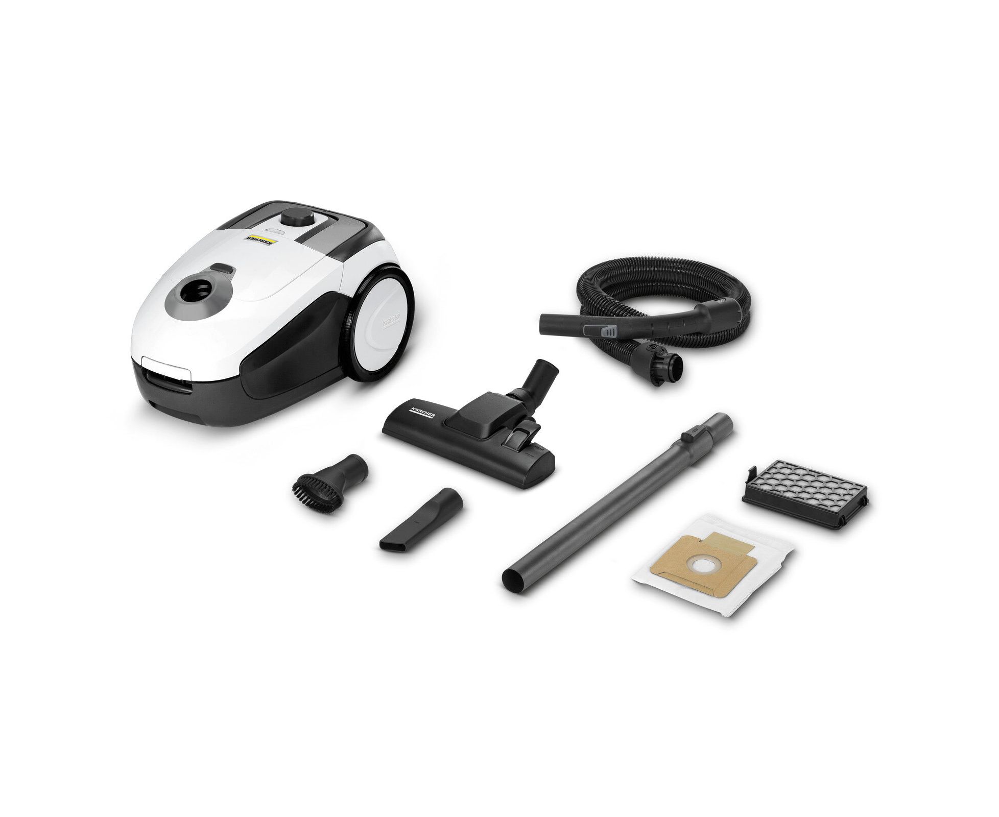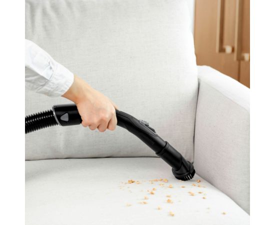 насадка для мягкой мебели, универсальная насадка для сухой уборки, щелевая насадка, всасывающий шланг 1,5 м с изогнутой рукояткой, крепление насадок на удлинительной трубке, насадка для пола, телескопическая удлинительная трубка, фильтр НЕРА 12