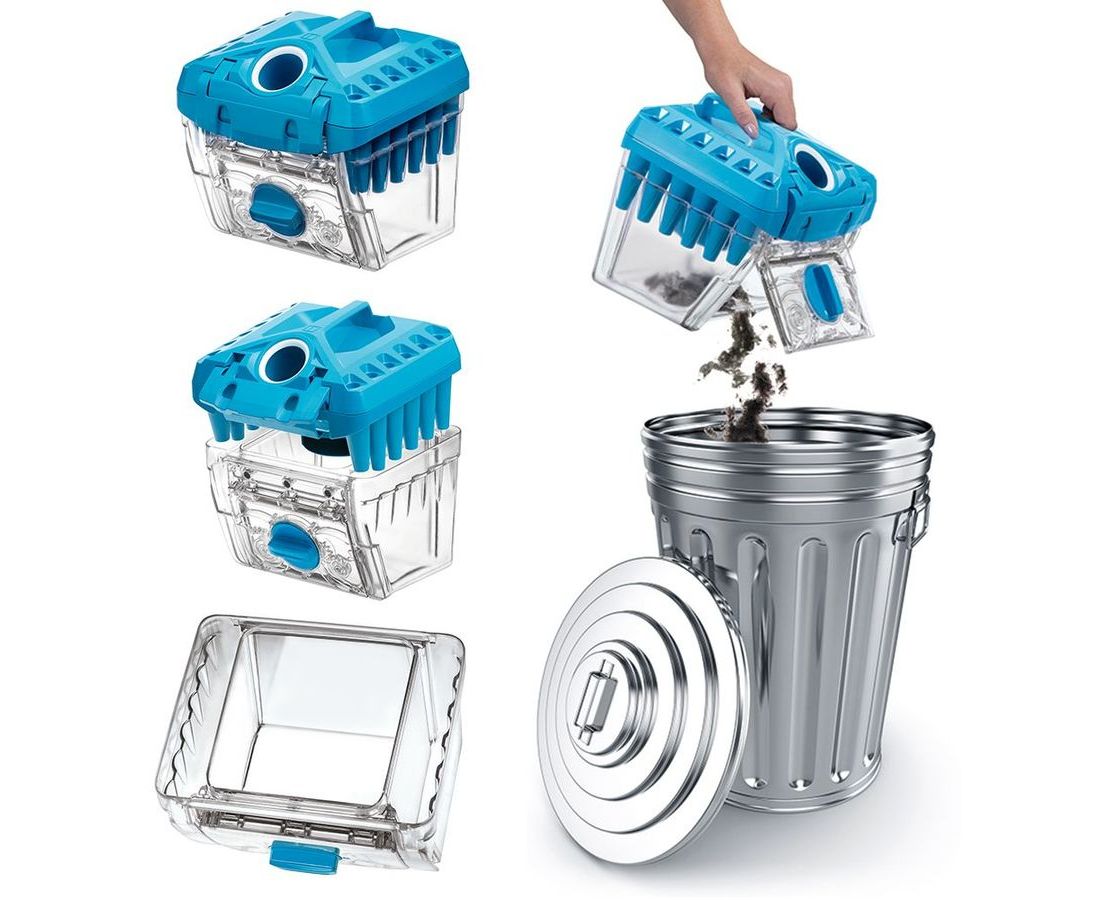 Приходится немного "поглотать" пыли во время очистки контейнера для мусора - в идеале заниматься этим нужно прямо на улице в мусорный бак, затем отмывать контейнер в ванне, а затем саму ванну. Но при этом контейнер довольно обьемный, чистить мне его приходится раз в месяц, а то и в два месяца, при этом никакого запаха (как, помнится, был от старинного пылесоса "Космос") нет, и на качество уборки это не влияет.