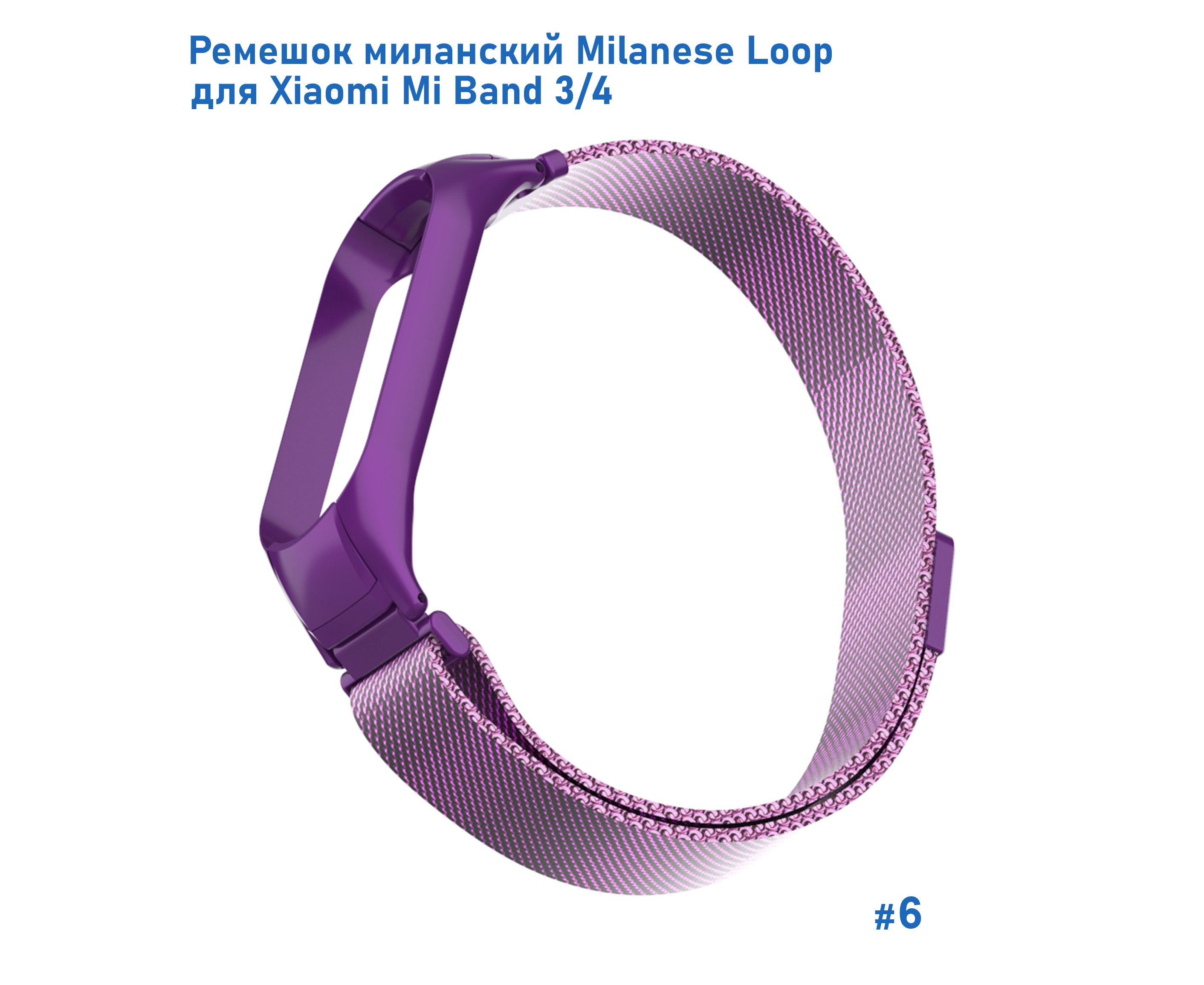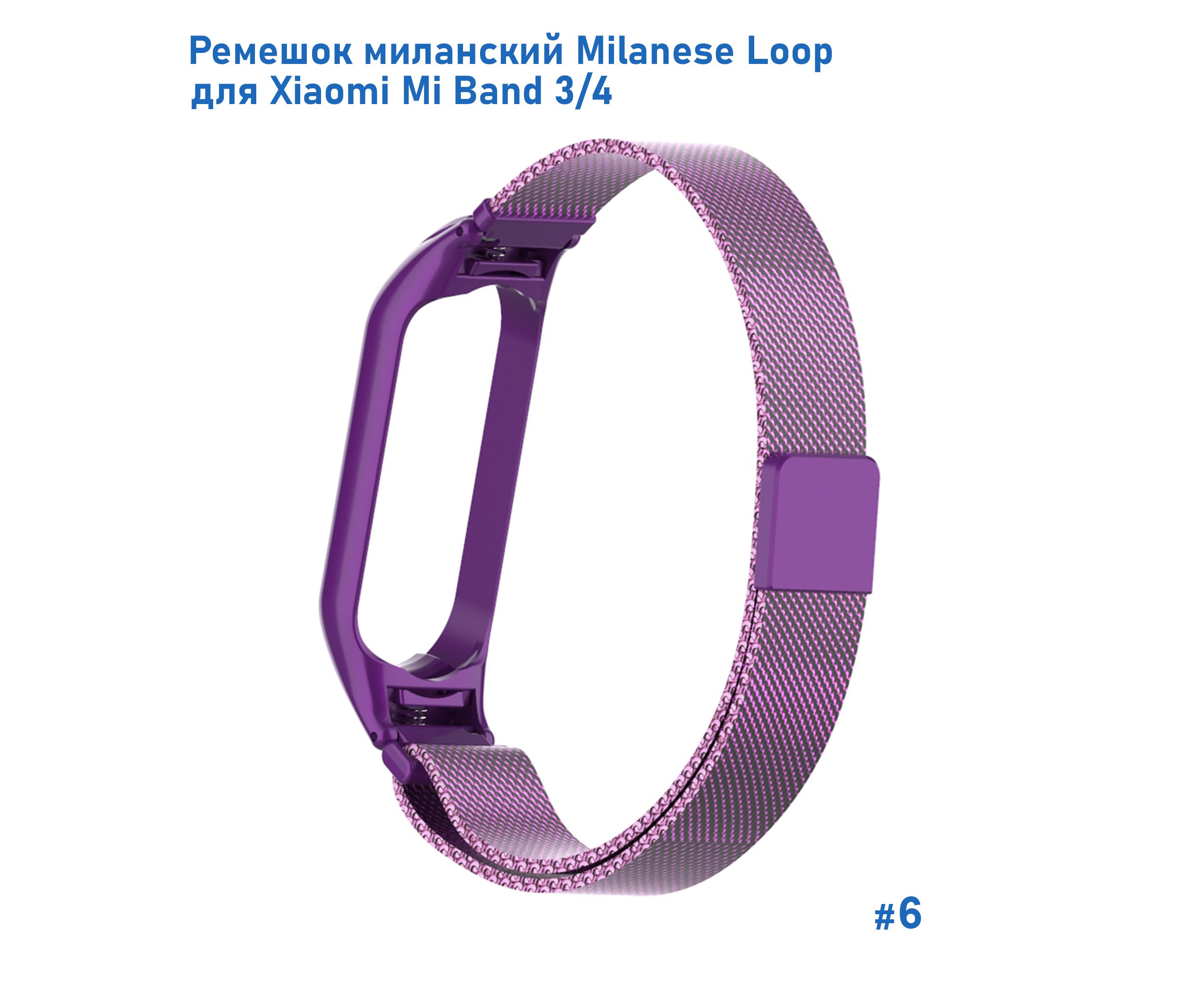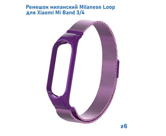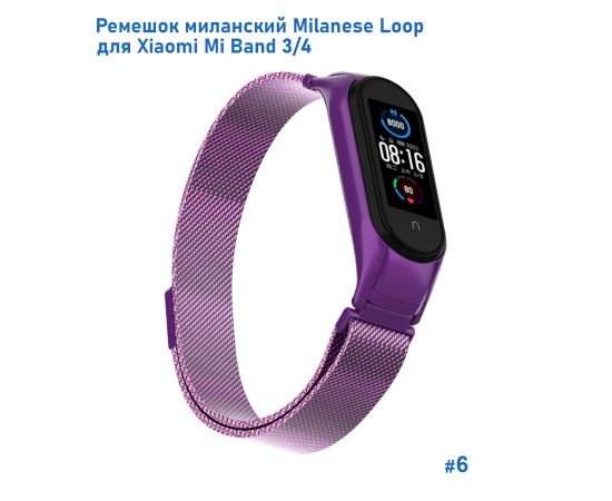 Ремешок миланcкий из нержавеющей стали Great Case Milanese Loop для Xiaomi Mi Band 3/4, 260мм, на магните, фиолетовый (6)
