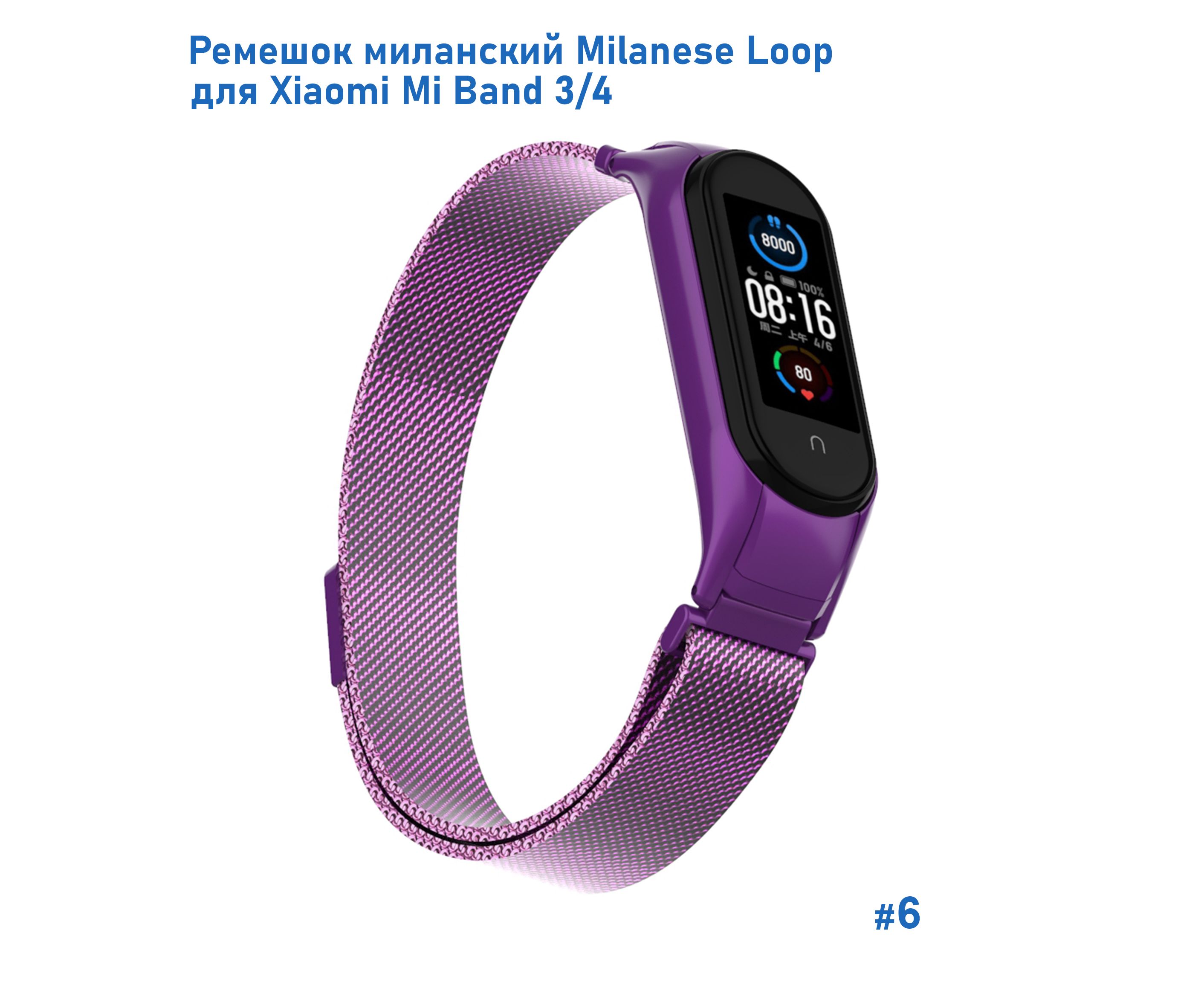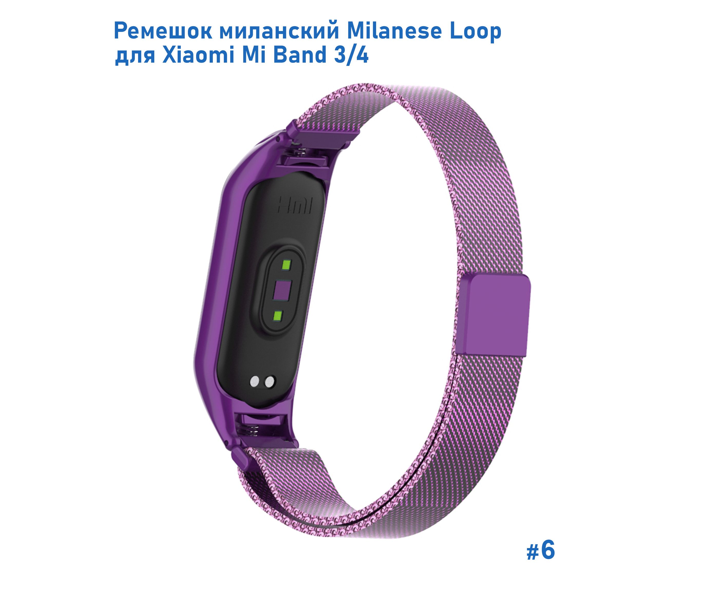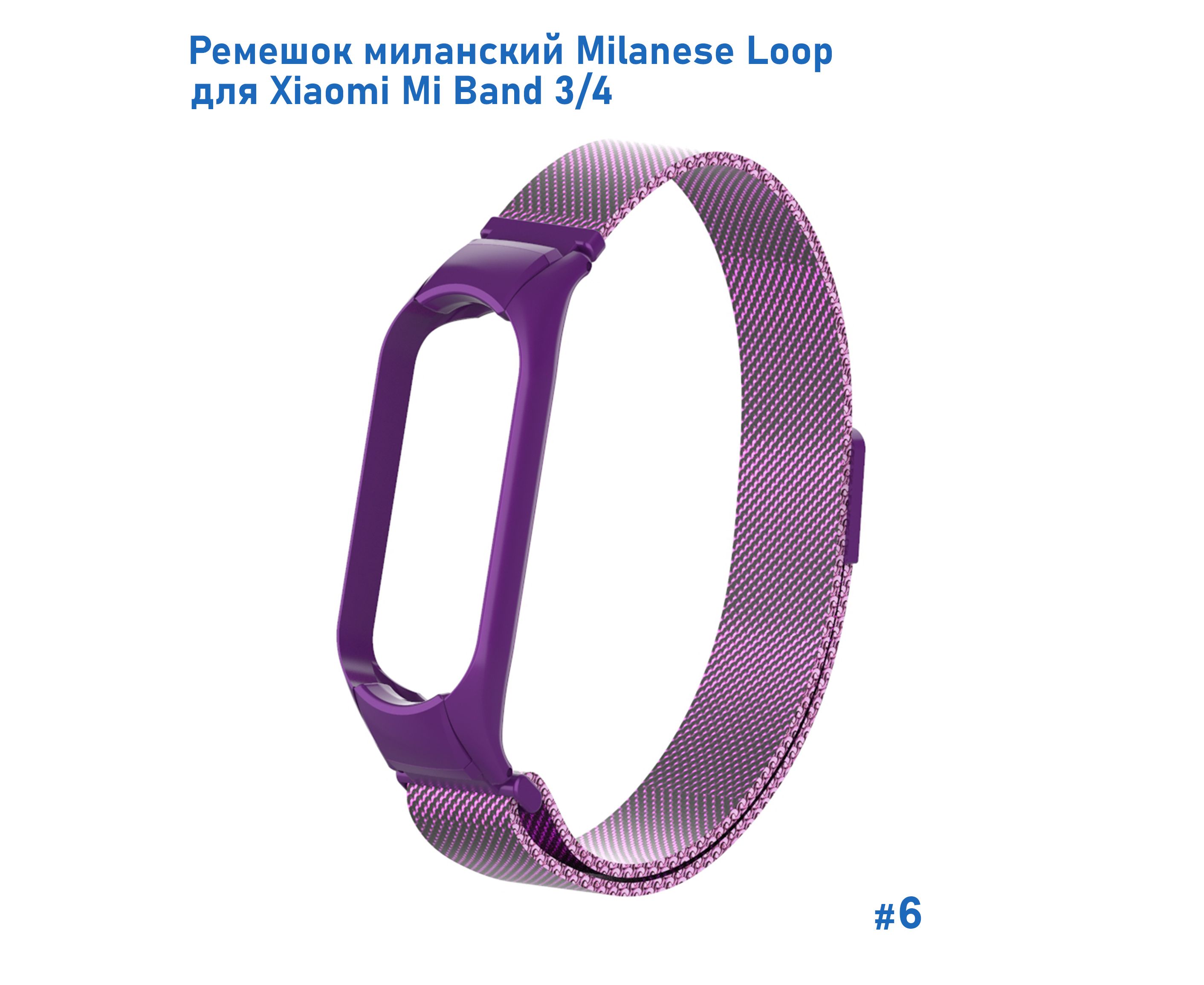 Ремешок миланcкий из нержавеющей стали Great Case Milanese Loop для Xiaomi Mi Band 3/4, 260мм, на магните, фиолетовый (6)