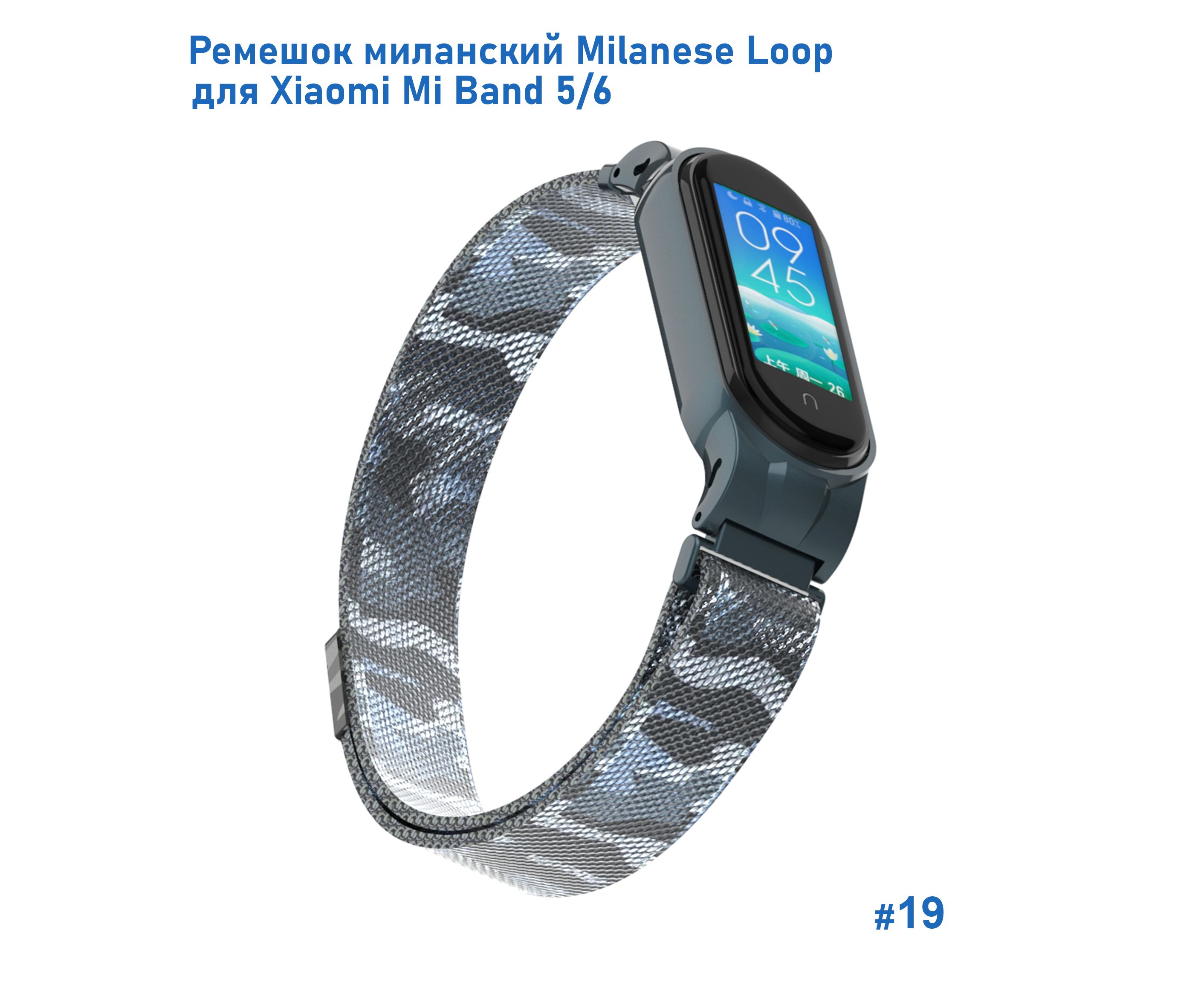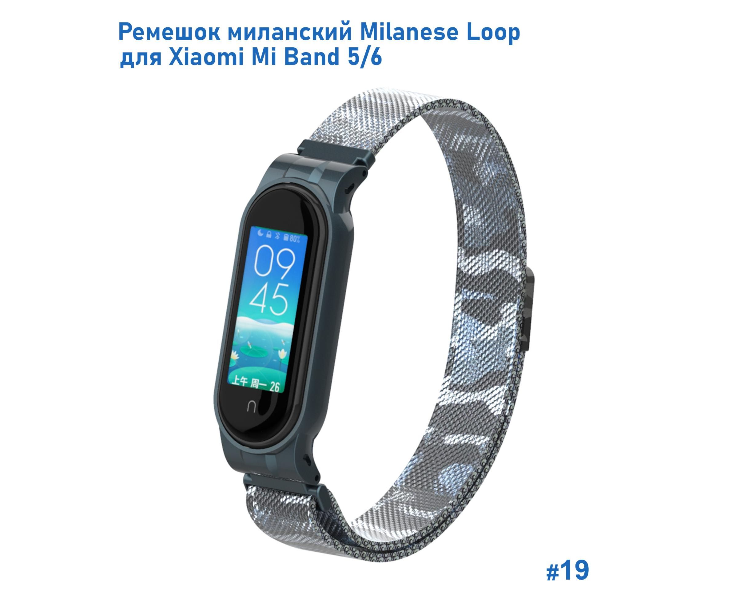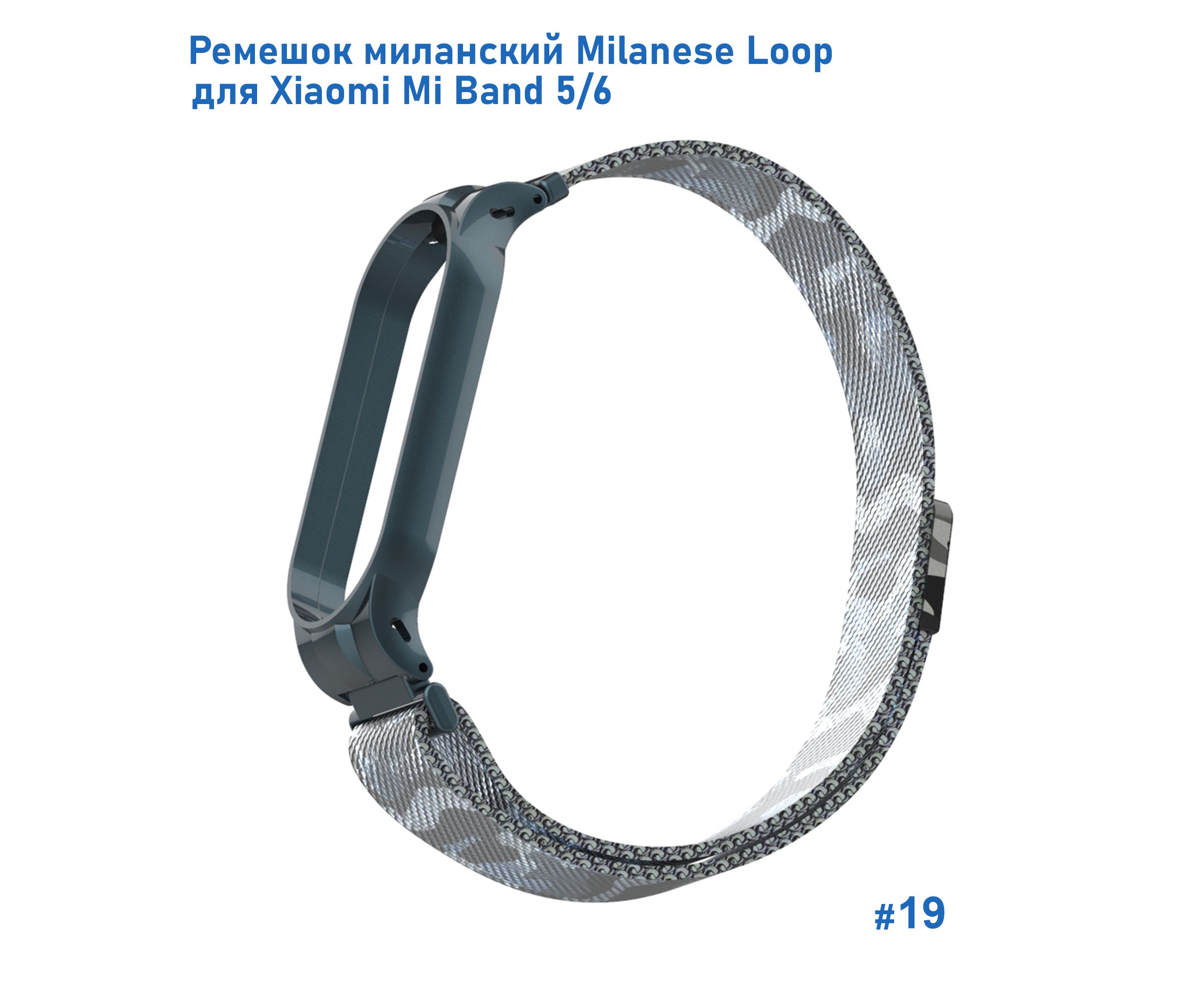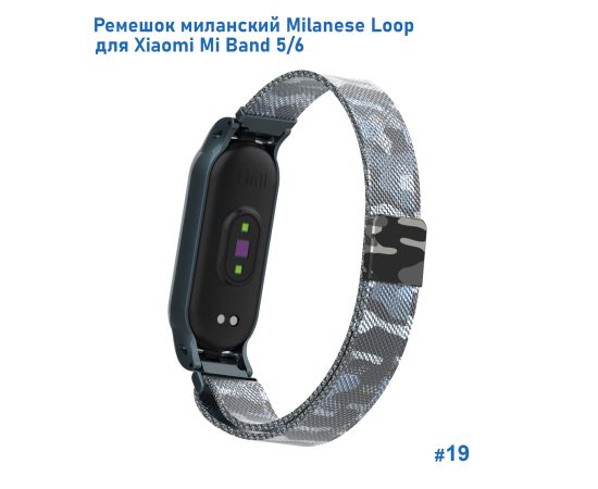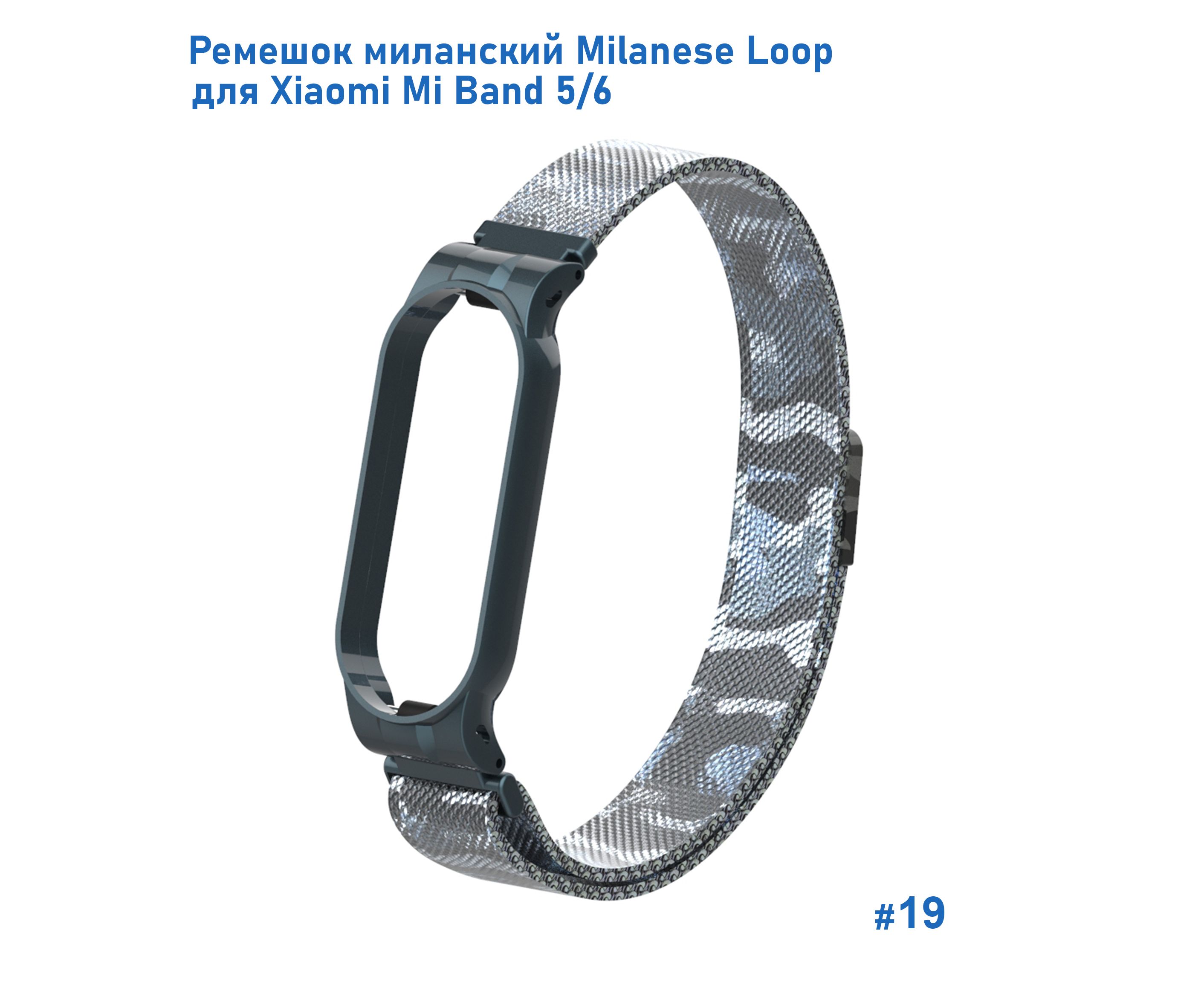 Ремешок миланcкий из нержавеющей стали Great Case Milanese Loop для Xiaomi Mi Band 5/6, 260мм, на магните, камуфляж+белый (19)