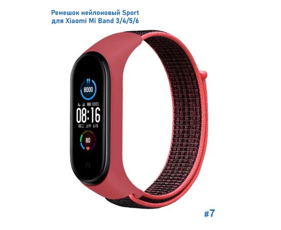 Ремешок нейлоновый Great Case Sport для Xiaomi Mi Band 3/4/5/6/7, 260мм, на липучке, розовый+черный (7)
