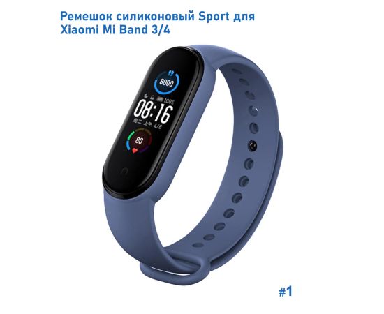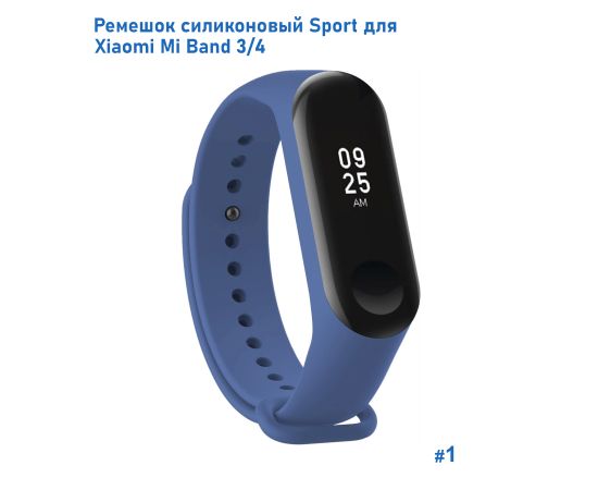 Ремешок силиконовый Great Case Sport для Xiaomi Mi Band 3/4, 250мм, на кнопке, темно-синий (1)