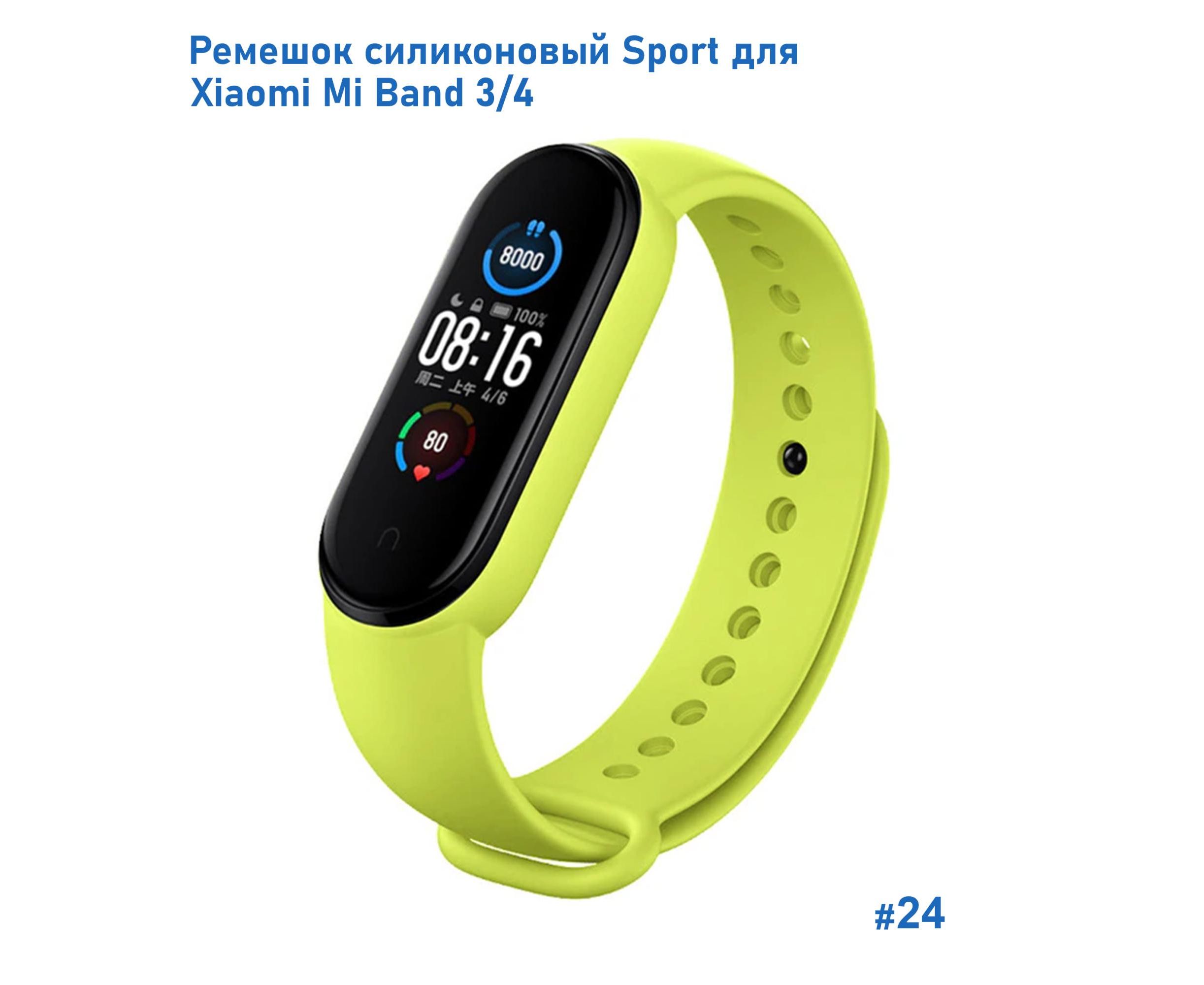 Ремешок силиконовый Great Case Sport для Xiaomi Mi Band 3/4, 250мм, на кнопке, лайм (24)