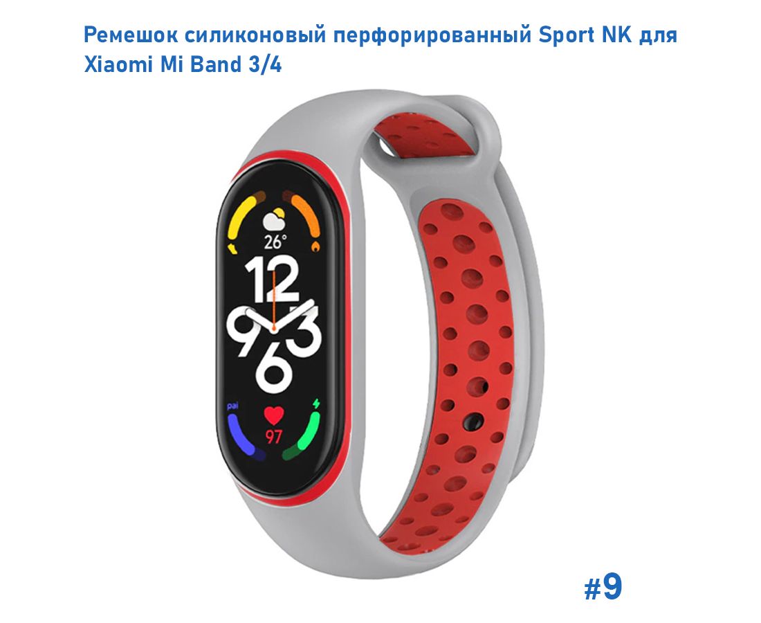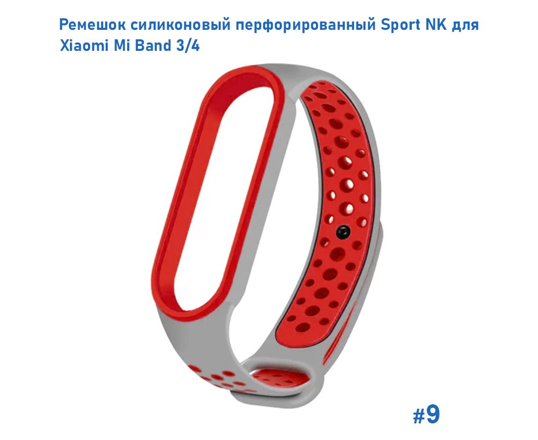 Ремешок силиконовый перфорированный Great Case Sport NK для Xiaomi Mi Band 3/4, 250мм, на кнопке, серый+красный (9)