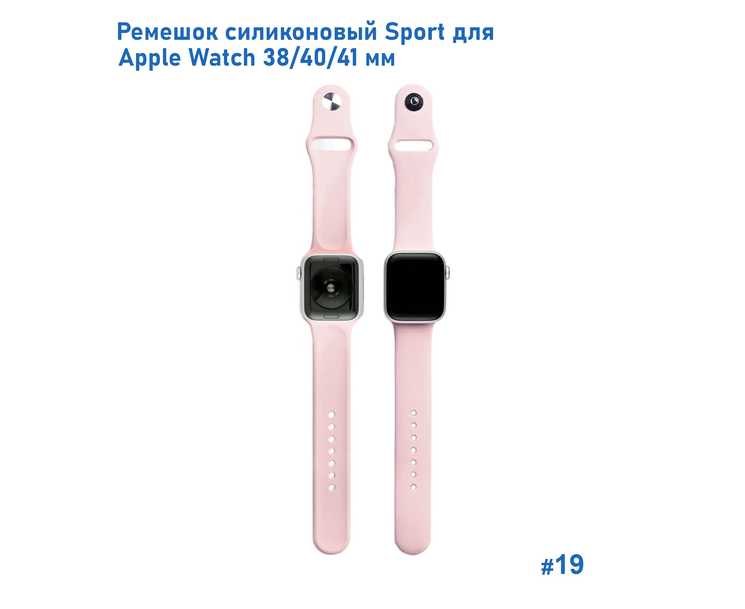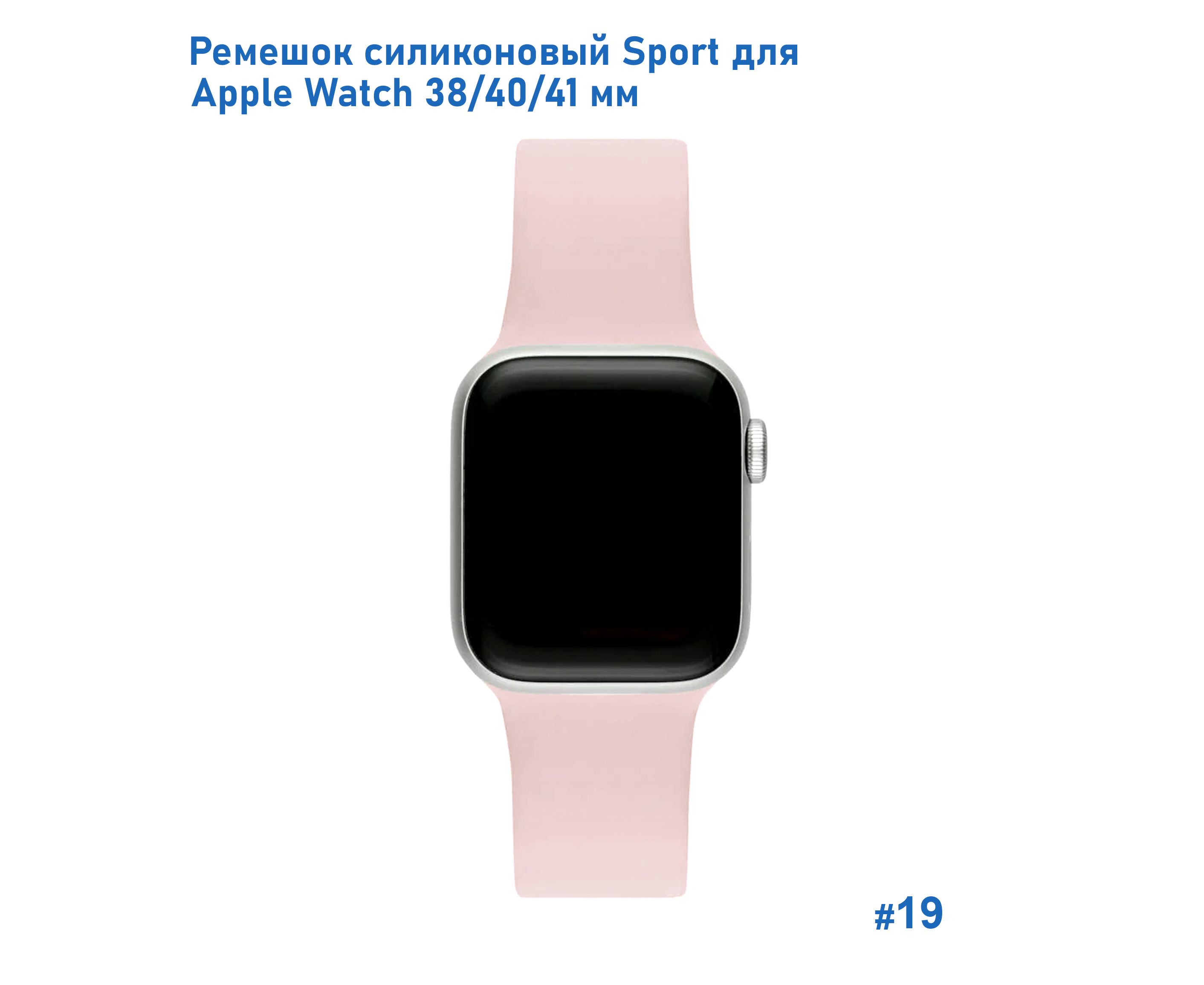 Ремешок силиконовый Great Case Sport для Apple Watch 38/40/41 мм, 225мм, на кнопке, пудровый (19)