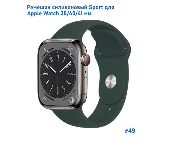 Ремешок силиконовый Great Case Sport для Apple Watch 38/40/41 мм, 225мм, на кнопке, темно-зеленый (49)