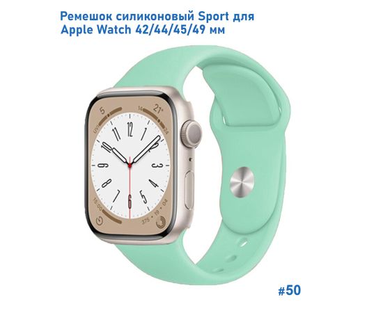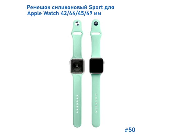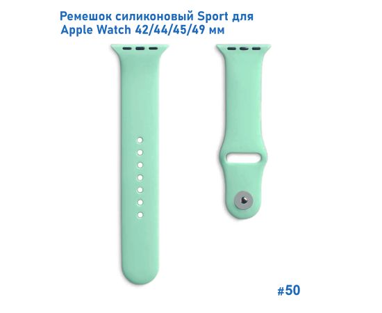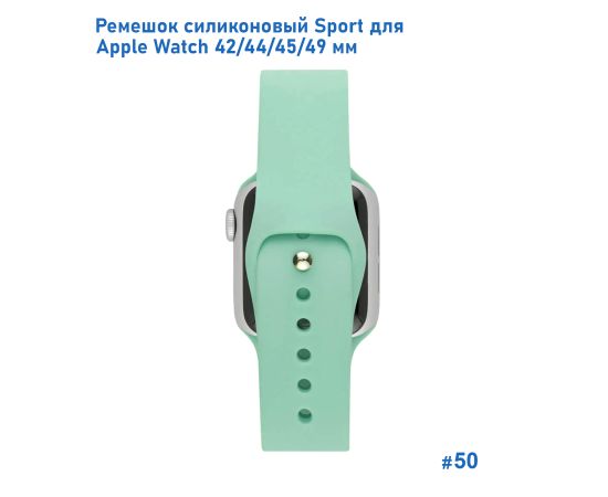 Ремешок силиконовый Great Case Sport для Apple Watch 42/44/45/49 мм, 235мм, на кнопке, ярко-мятный (50)