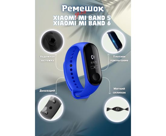 Ремешок силиконовый для Xiaomi Mi Band 5/6, синий, №08