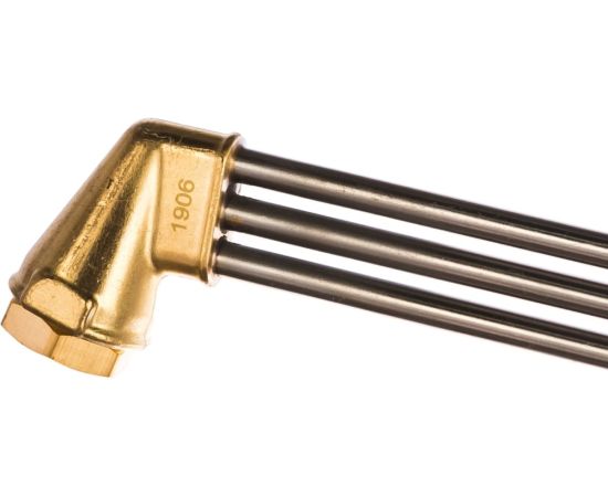 Резак трехтрубный универсальный KRASS-535 2278588 вентильный, внутрисоплового смешения предназначен для ручной газокислородной резки (раскроя) листового и сортового металла из низкоуглеродистых сталей толщиной до 300 мм.