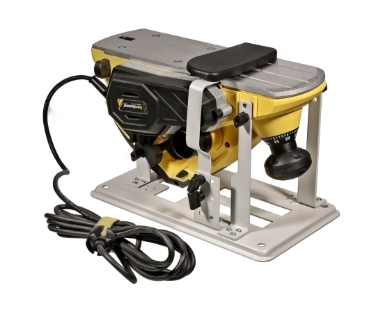 Функционал рубанка предусматривает возможность выборки четверти в диапазоне до 15,5мм, а направляющие пазы на подошве позволяют снимать фаску.