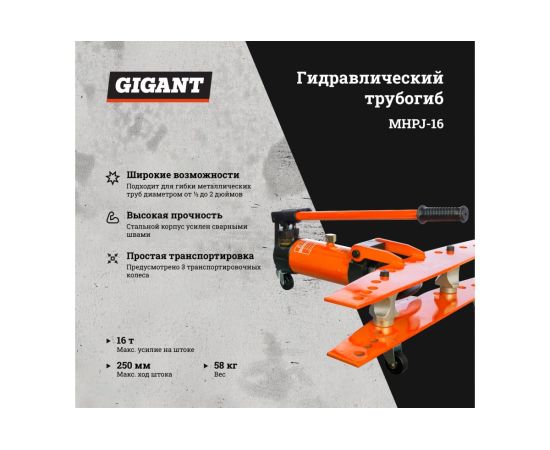 Ручной гидравлический трубогиб Gigant 16т. MHPJ-16