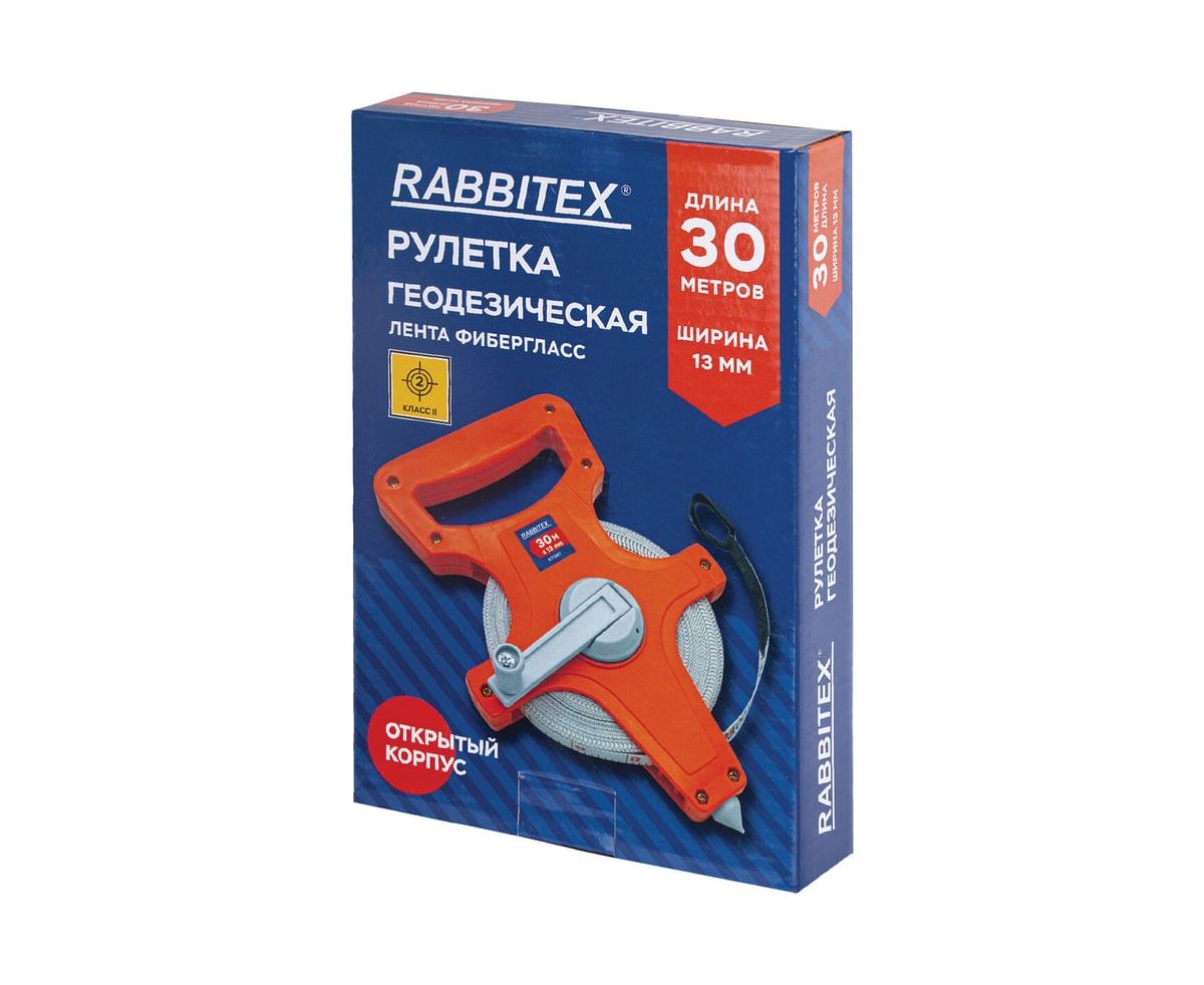 Рулетка геодезическая RABBITEX 671367 30м*13мм, лента фибергласс, открытый корпус