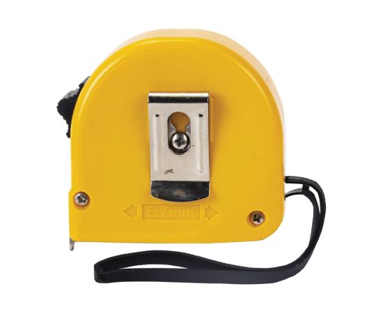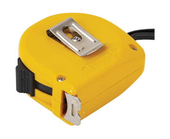 Рулетка оснащена ремешком для ношения на запястье, а также металлической клипсой для крепления на поясе. Эргономичный дизайн с вертикальным фиксатором измерительной ленты позволит использовать рулетку даже одной рукой.