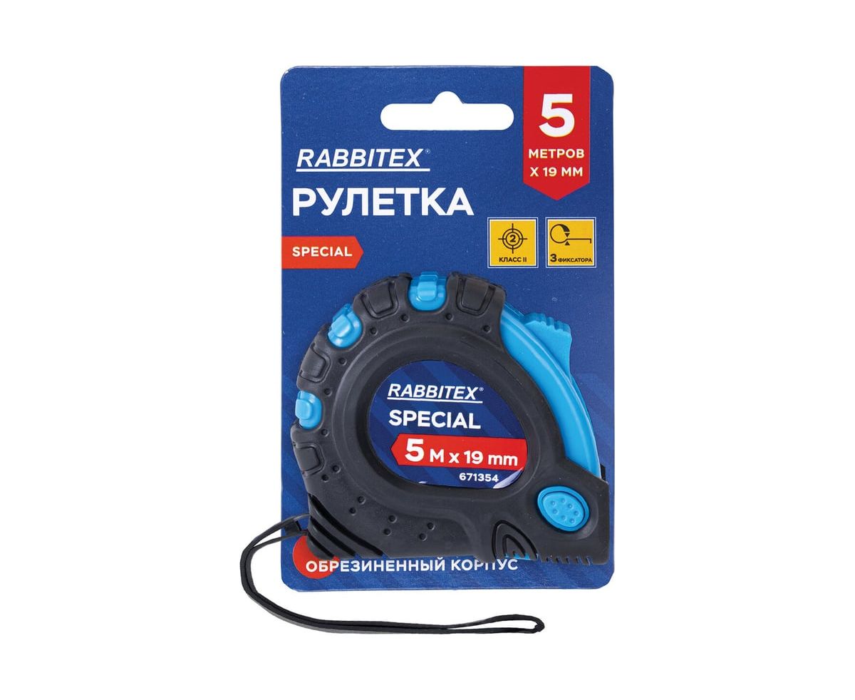 Рулетка измерительная RABBITEX 671354 Special 5м*19мм, обрезиненный корпус, 3 фиксатора