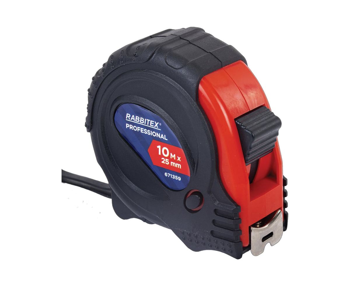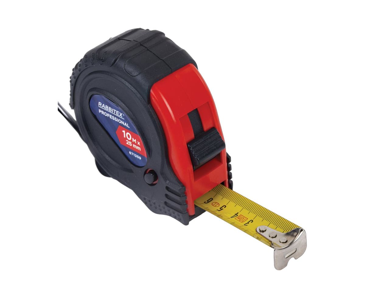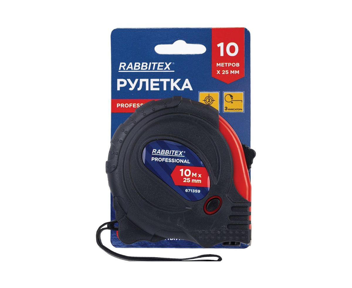 Рулетка измерительная RABBITEX 671359 Professional 10м*25мм, обрезиненный корпус, 3 фиксатора
