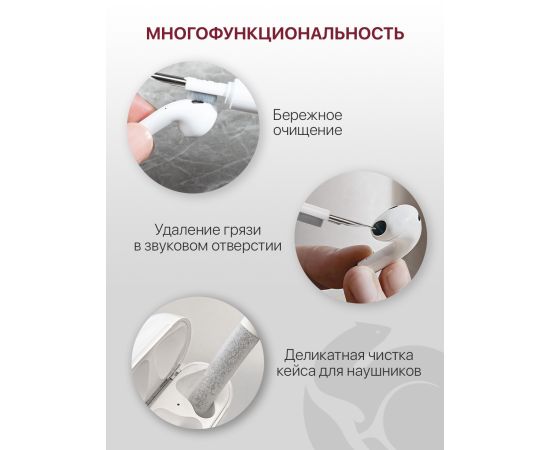 Щетка для чистки гаджетов (3в1) для наушников, часов, телефона, клавиатуры, гаджетов, бытовой техники, фотоаппарата, ручка-щетка универсальная, белая (Набор для чистки - многофункциональная щетка для чистки цифровой техники)