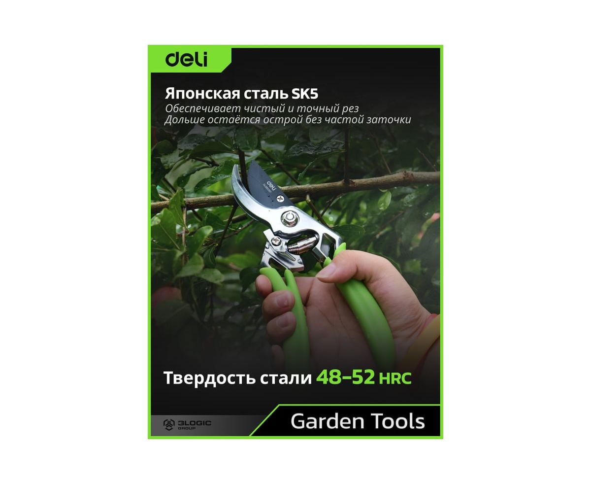 Секатор садовый DELI 215 мм DL580207 представляет собой надежный инструмент для ухода за садом.