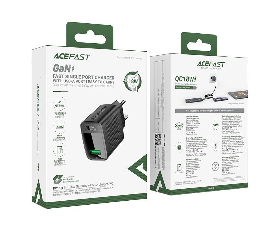 Сетевое зарядное устройство ACEFAST A90 QC18W GaN Single USB-A Charger (EU) Black