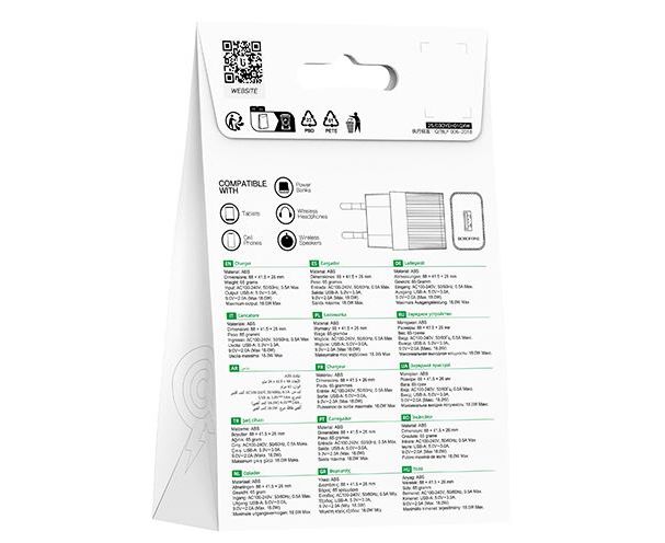 Сетевое зарядное устройство BOROFONE BAS72A/ СЗУ + Кабель Type-C 1m/ QC 3.0/ 1 USB/ Выход: 18W/ Белый