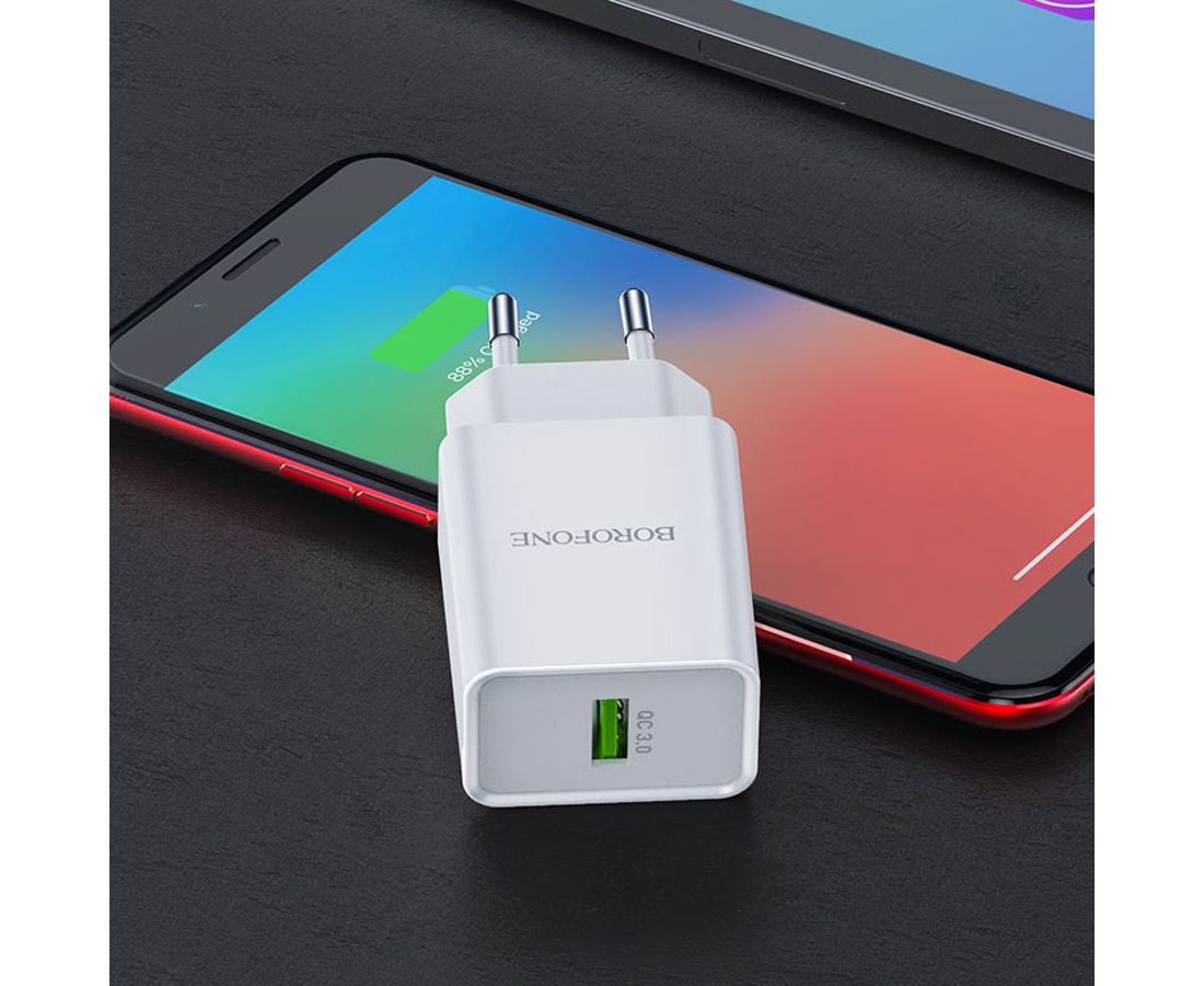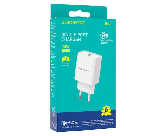 Сетевое зарядное устройство BOROFONE BN5 Jingrui single 1xUSB, 3.0A, 18W, белый