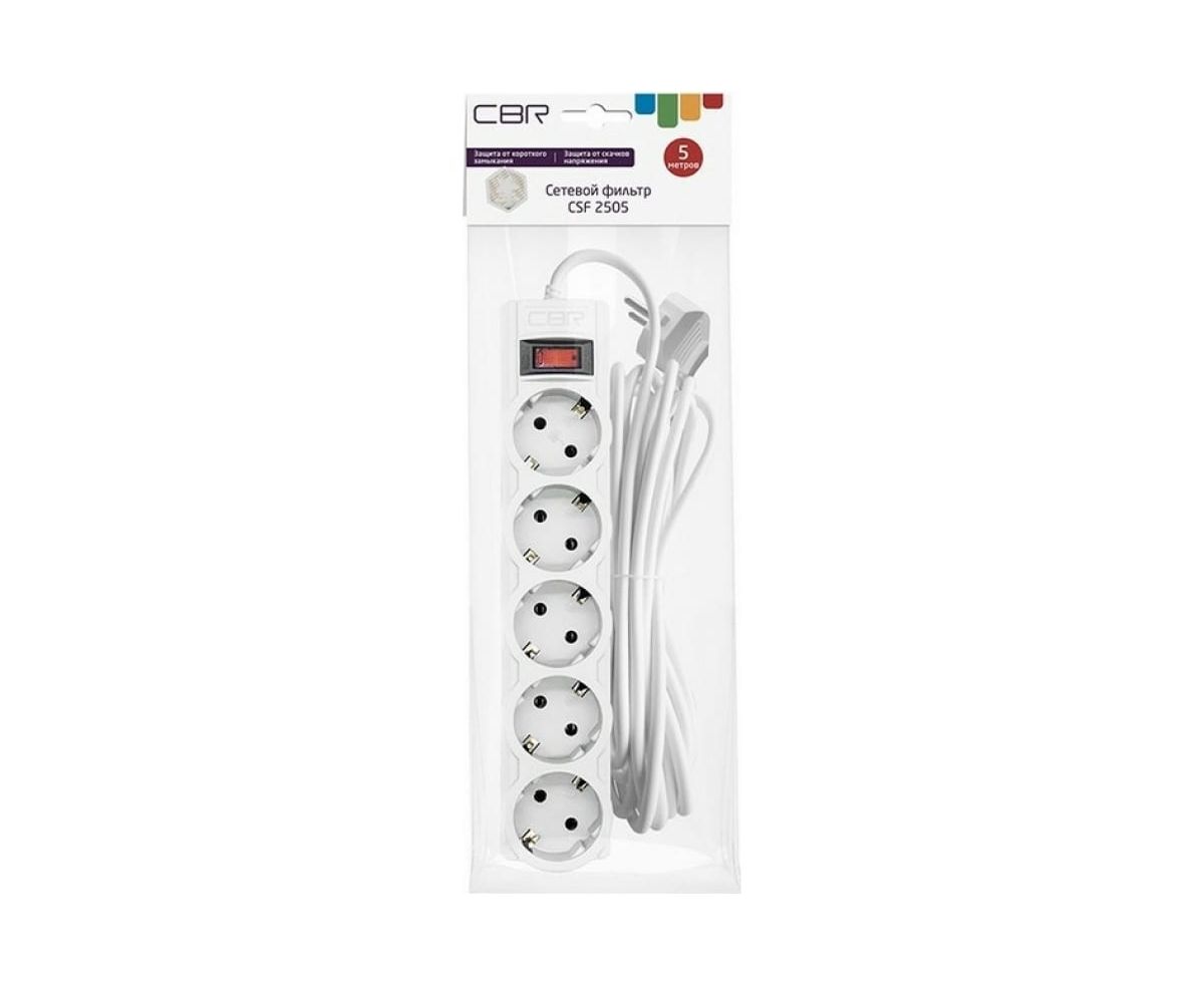 Сетевой фильтр CBR CSF 2505-5.0 White CB, 5 евророзеток, длина кабеля 5 метров, белый (коробка)