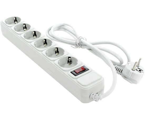сетевой фильтр на 6 евророзеток, суммарная мощность нагрузки: 2.2 кВт, максимальный ток нагрузки: 10A, кабель 1.8м, белый
