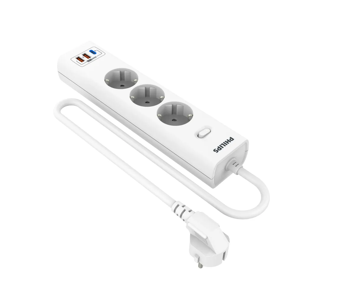 Сетевой фильтр удлинитель Philips CHP8236WB/51 представляет собой удобное устройство, которое позволяет подключать несколько устройств к одной розетке. Этот пилот удлинитель оснащен 3 розетками и 2 USB-А, а также одним портом Type-C, что обеспечивает возможность подключения различных электронных устройств, можно использовать как фильтр для компьютера, а также хорошо подойдет как удлинитель для гирлянды, поэтому он является многофункциональным. Длина разветвителя электрического составляет 3 метра, что позволяет свободно располагать подключенные устройства в нужном месте. Важным преимуществом розетки с выключателем является наличие заземления, которое обеспечивает безопасность и защиту от перегрузок. Тройник с usb 3.0 обладает многофункциональностью, позволяя подключать не только электрические приборы, но и заряжать устройства с помощью USB-портов. Сетевой фильтр Philips обладает передовой технологией быстрой зарядки QC 3.0 - Смартфон непрерывно посылает зарядному устройству информацию о состоянии аккумулятора. На основании этой информации блок питания регулирует выходную мощность, изменяя напряжение и силу тока. Также, благодаря новейшей технологии GaN, этот удлинитель предлагает высокую мощность, занимая при этом минимум места. Сетевые зарядные устройства, в которых используется технология GaN (нитрид галлия), потребляют меньше электрических компонентов и обладают лучшей теплоотдачей. Белый цвет разветвителя с type c придает ему стильный и современный вид, а прочный корпус обеспечивает долговечность и надежность использования. Этот удлинитель силовой идеально подходит для использования дома или в офисе, где требуется подключение и зарядка сразу нескольких устройств. Идеально подойдет для использования дома, гаража, склада, офиса.