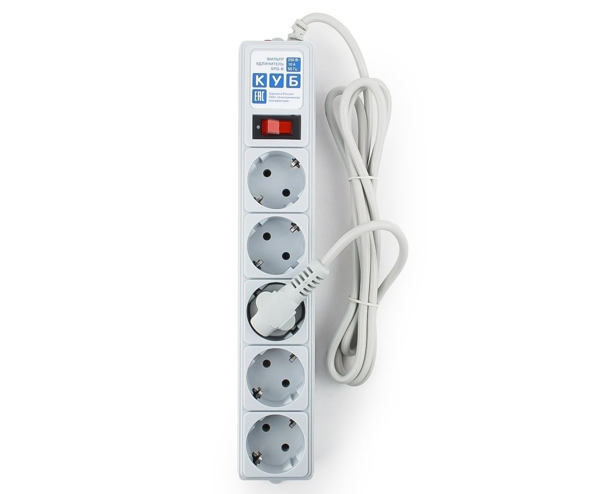 Сетевой фильтр Power Cube SPG-B-6 1.9м (5 розеток) серый (коробка)