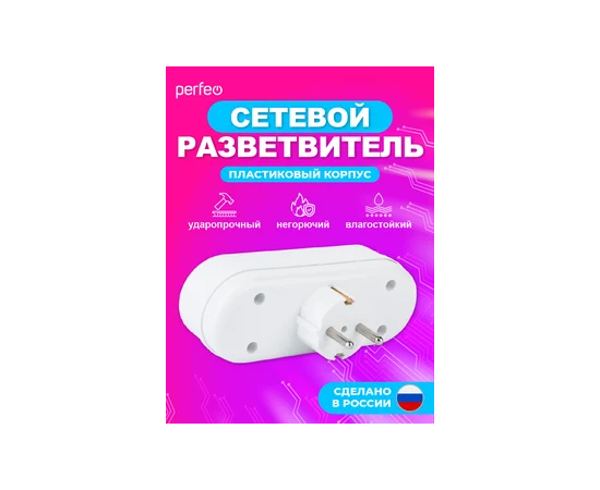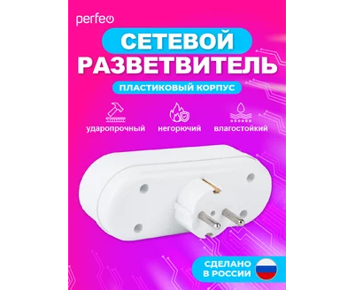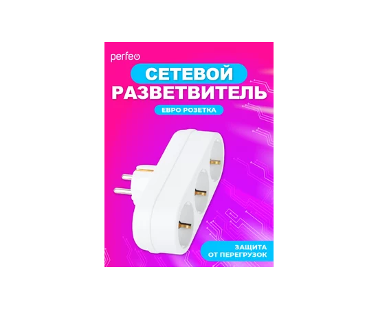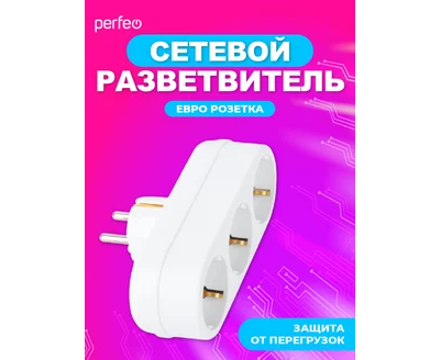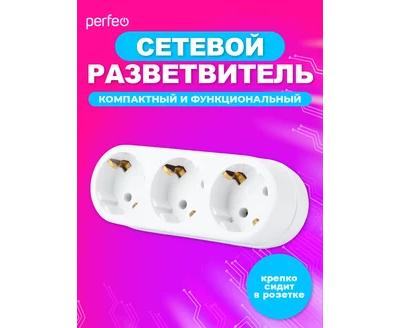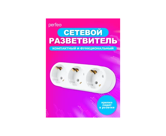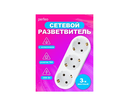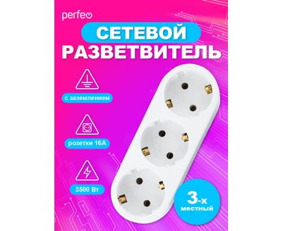 Сетевой разветвитель Perfeo "RU POWER'' 3 гнезда, 16А, с заземлением, (3L3), белый