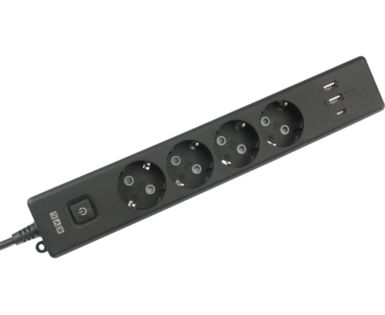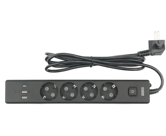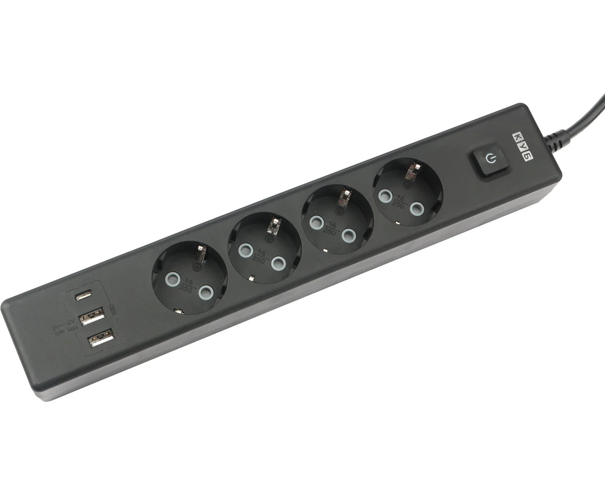 USB-порт Type-A: 2 шт. USB-порт Type-C: 1 шт. Поддержка быстрой зарядки. Защитные шторки. Кнопка включения/отключения