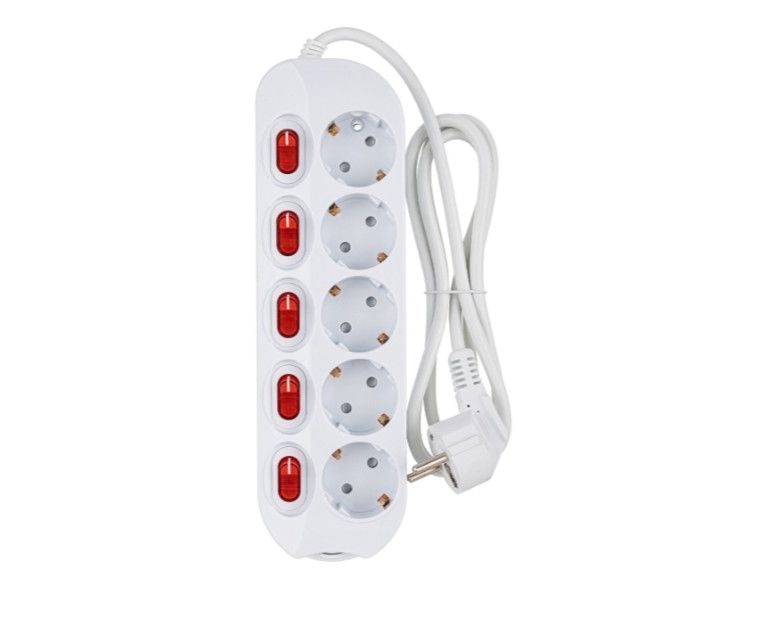 Сетевой удлинитель СТАРТ 4680024810432 C/У S 5х1-ZDIV с заземлением и защитой от детей сечение провода 3х1мм2, длина провода 1,5м