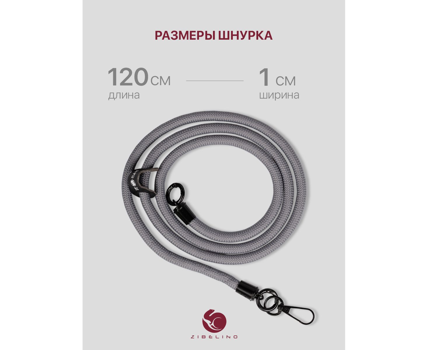 Шнурок универсальный 120см: для телефона на шею, для ключей, бейджа, пропуска, ремешок веревка через плечо, на руку, с карабином нейлоновый регулируемый, серый